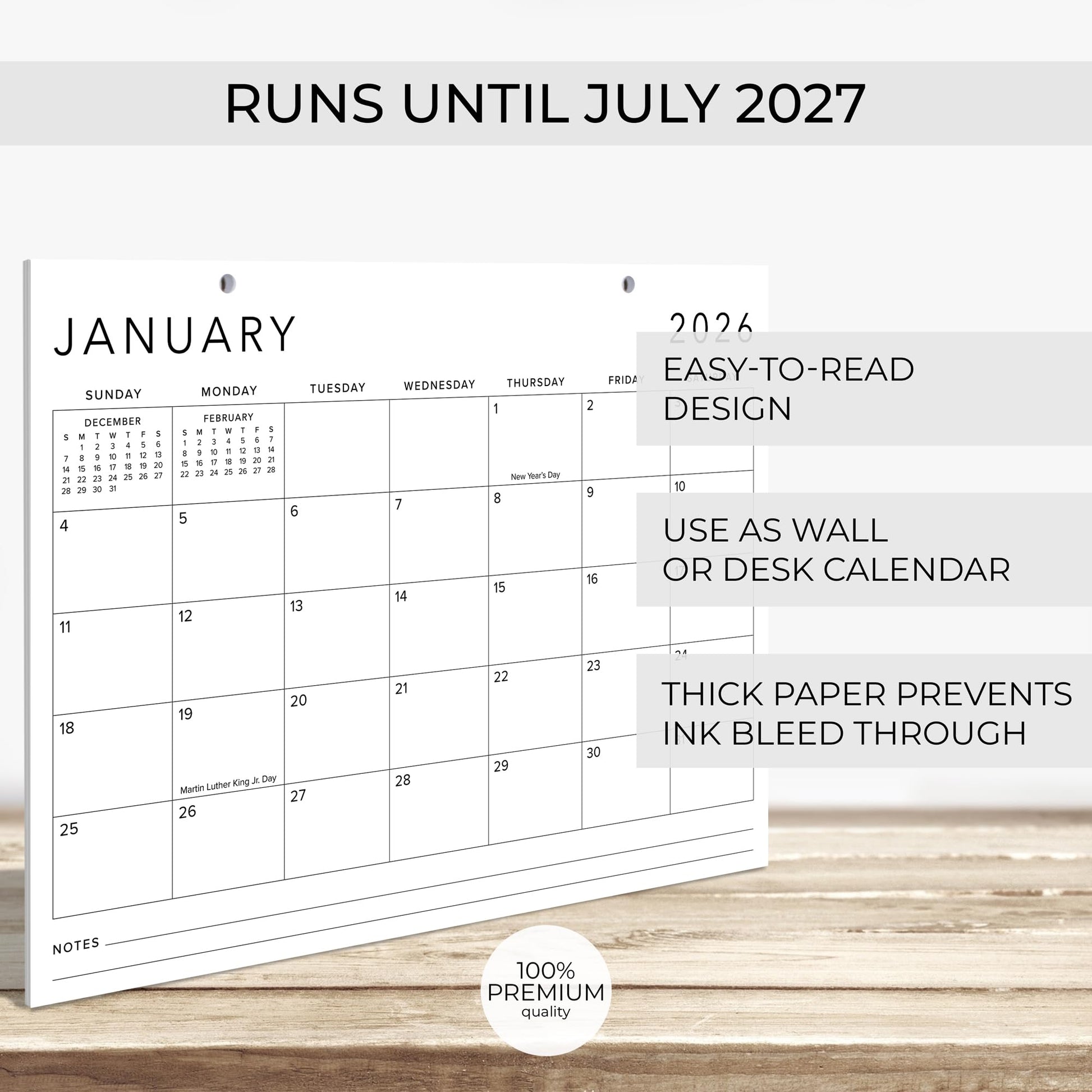 Aesthetic 2026 Desk Calendar - Runs From January 2026 Until July 2027 - Large Minimalistic Office Desktop/Wall Calendar 16"x12" for Easy Organizing