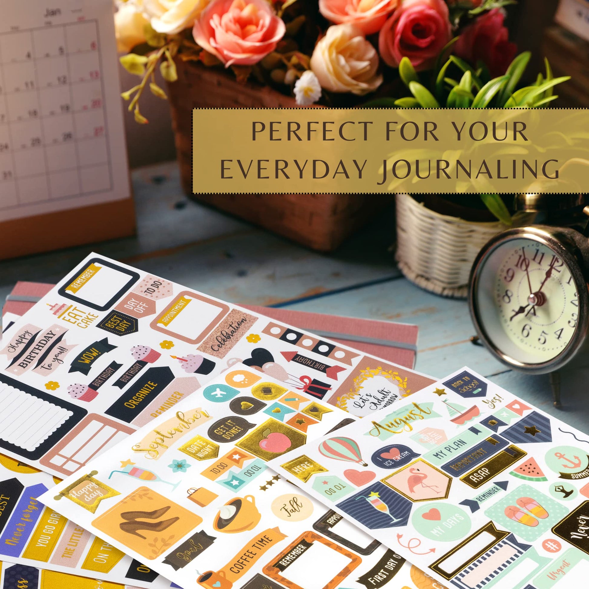 Aesthetic Gold Foil Planner Stickers - 1250+ Stunning Design Accessories Enhance and Streamline Your Planner, Journal and Calendar