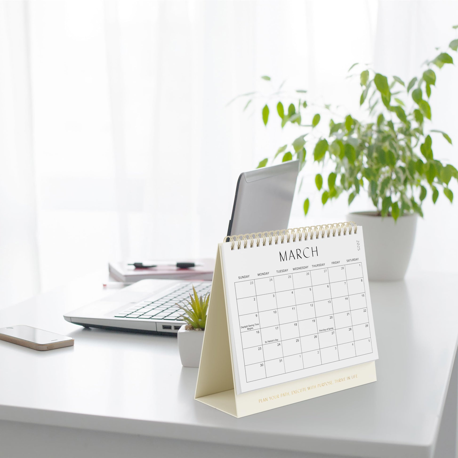 Pretty & Smart In Premium Style: Made of thick paper & reliable ring binding for a smooth flip over, the small calendar is your top-notch planning tool! Clever: use the calendar flat on a desk or in a standing position (hurray to the stable cardboard back!