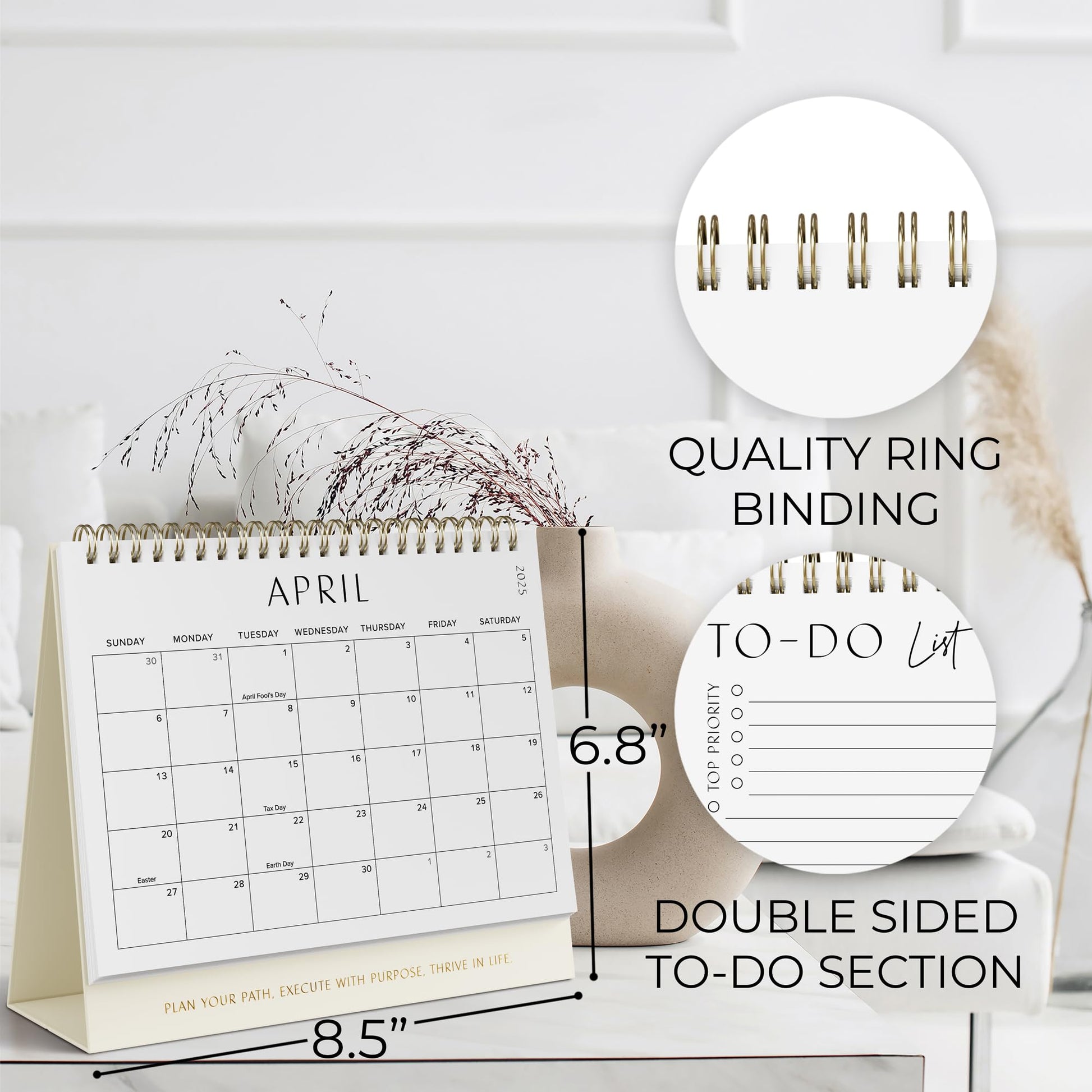Easily Tackle All Your To Do’s: Optimizing your task management & boosting your productivity - now as easy as it gets! The calendar is perfect for organizing, planning & prioritizing your tasks as each month offers an entire flipside for a neat to do list