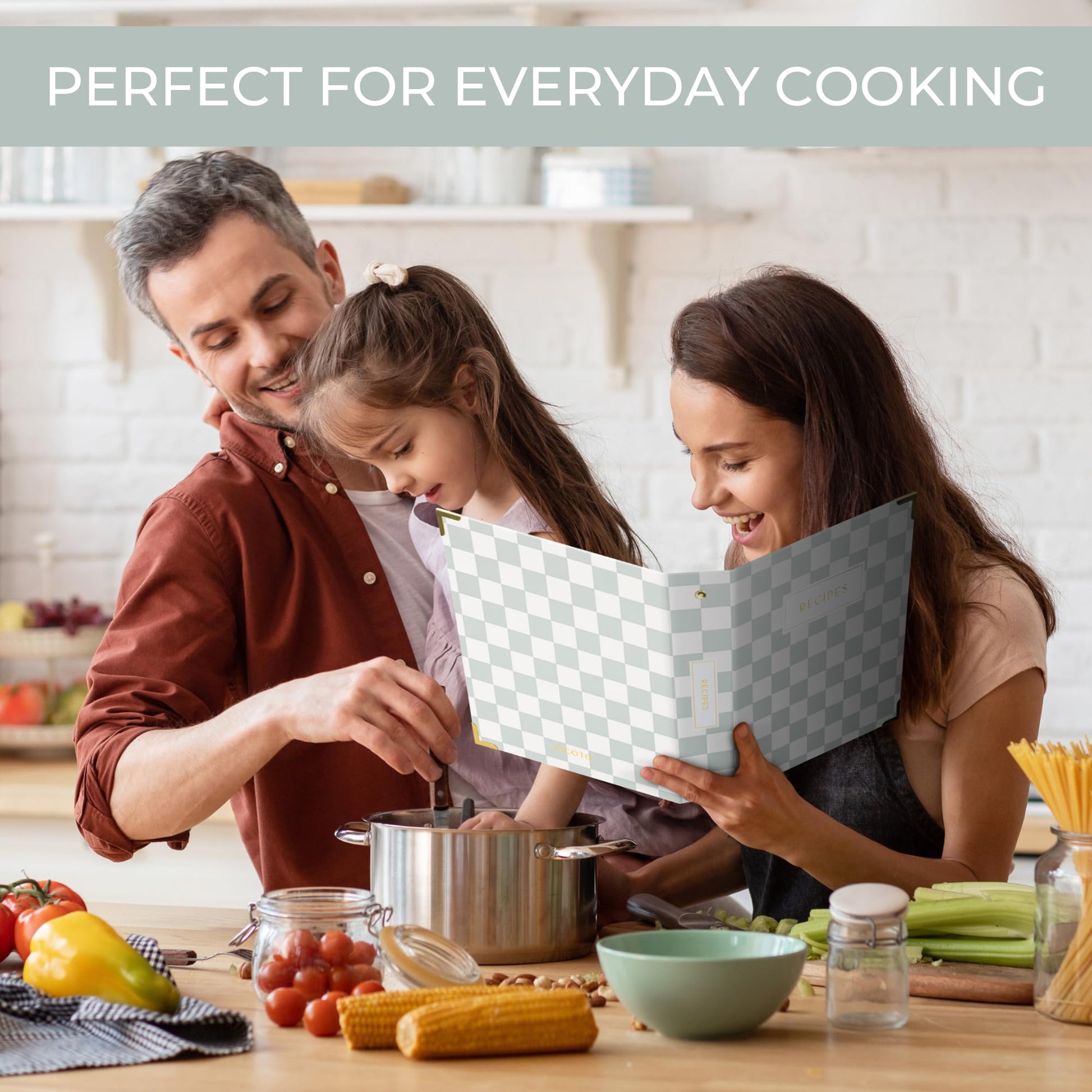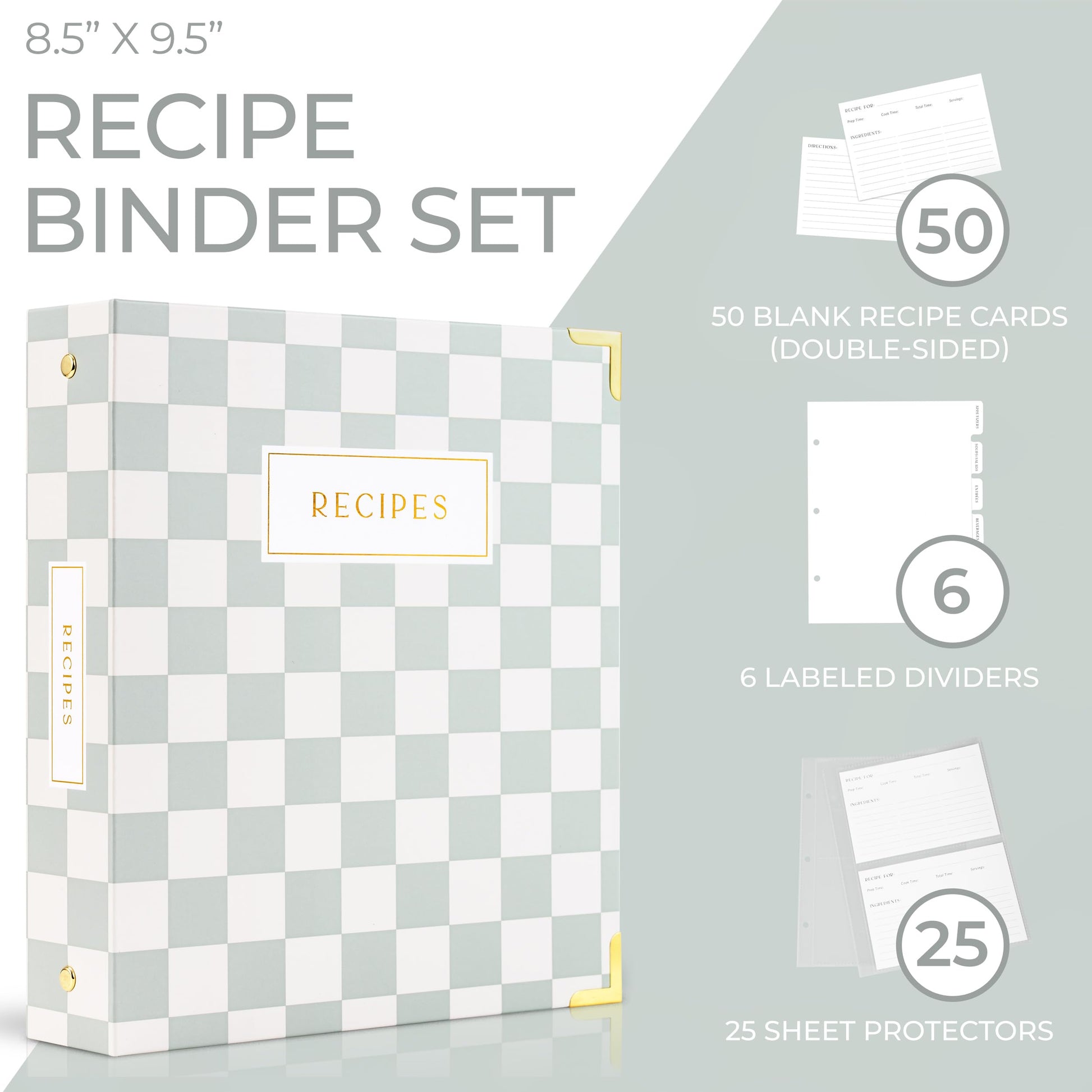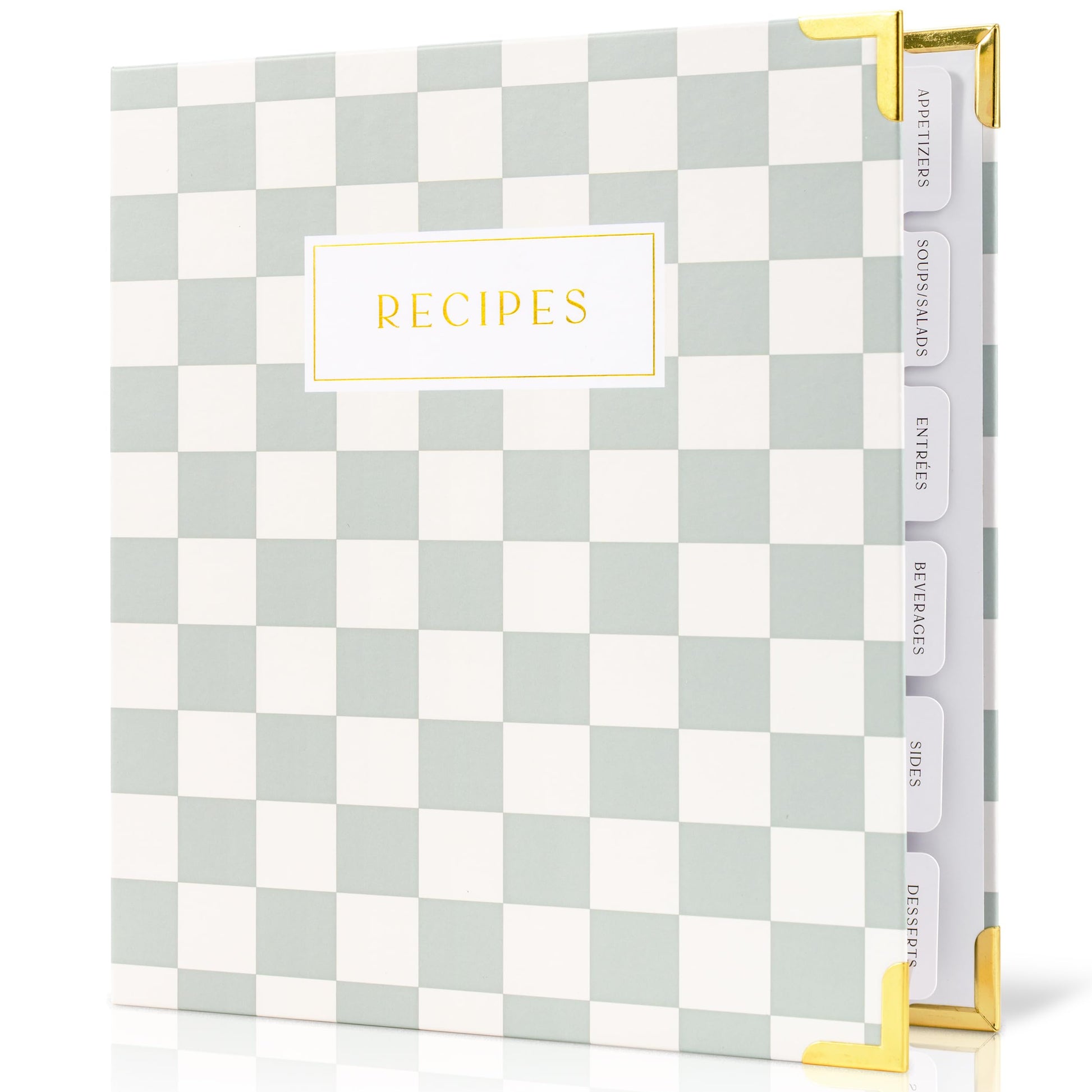 Beautifully Designed - Made To Last: The modern recipe notebook binder comes with a premium hard cover w/ a ring binding in a lovely checkered design, golden edges & gold foil lettering. Made of hard cover it not only looks fantastic, but is great for everyday kitchen use