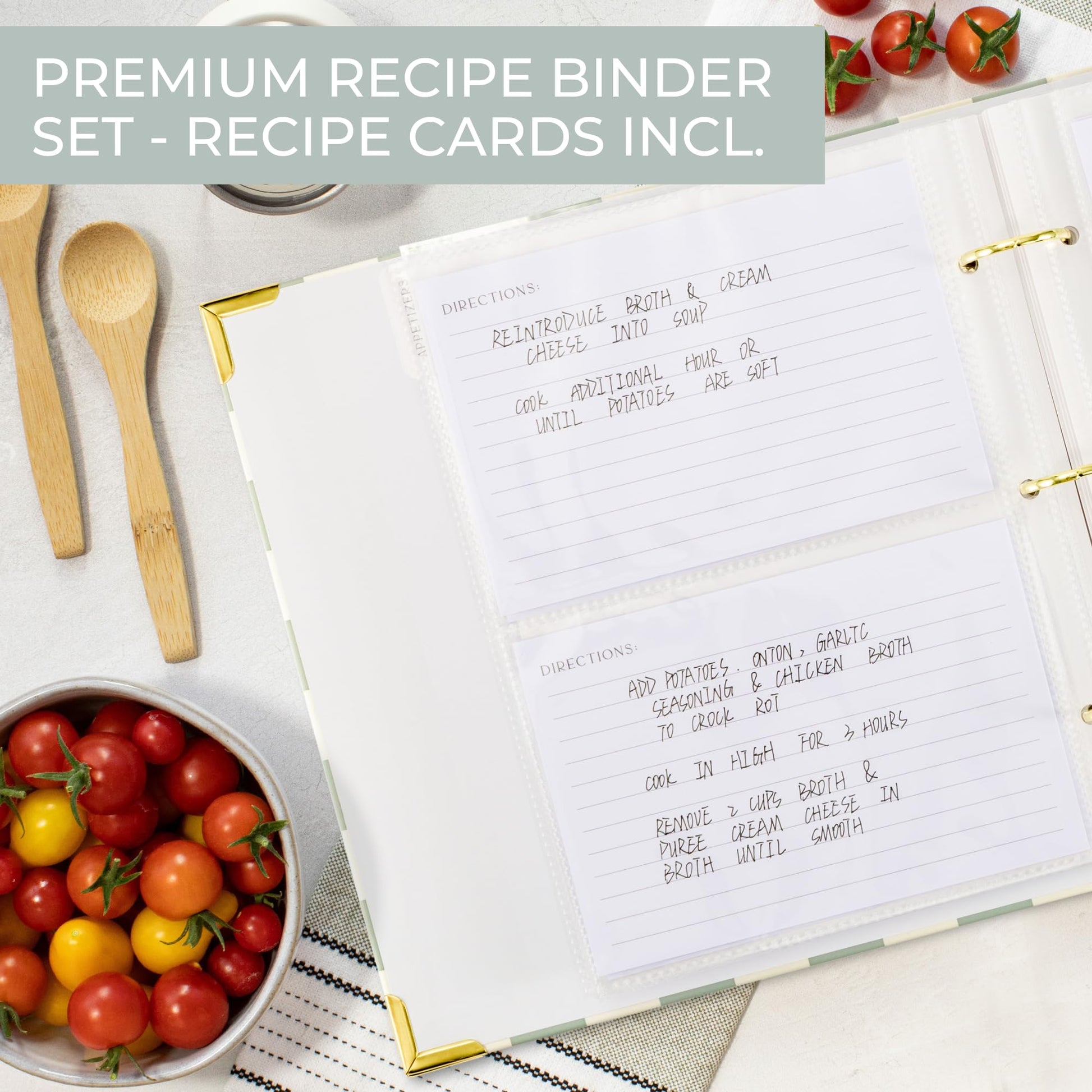Aesthetic Recipe Binder with Waterproof Cover - The Perfect Recipe Book with Plastic Sleeves to Write in Your Own Recipes - Quality Blank Cookbook Binder, Cards incl.