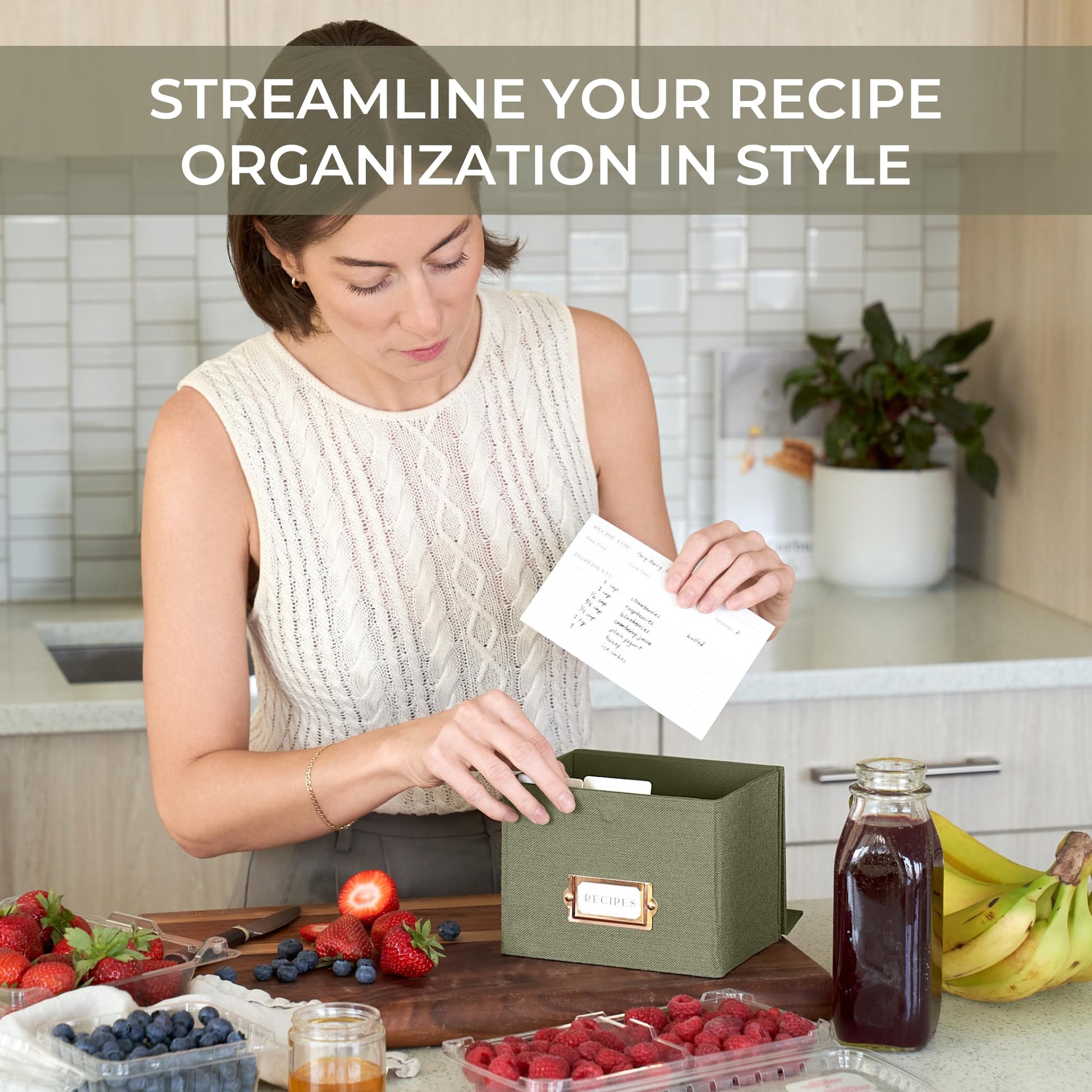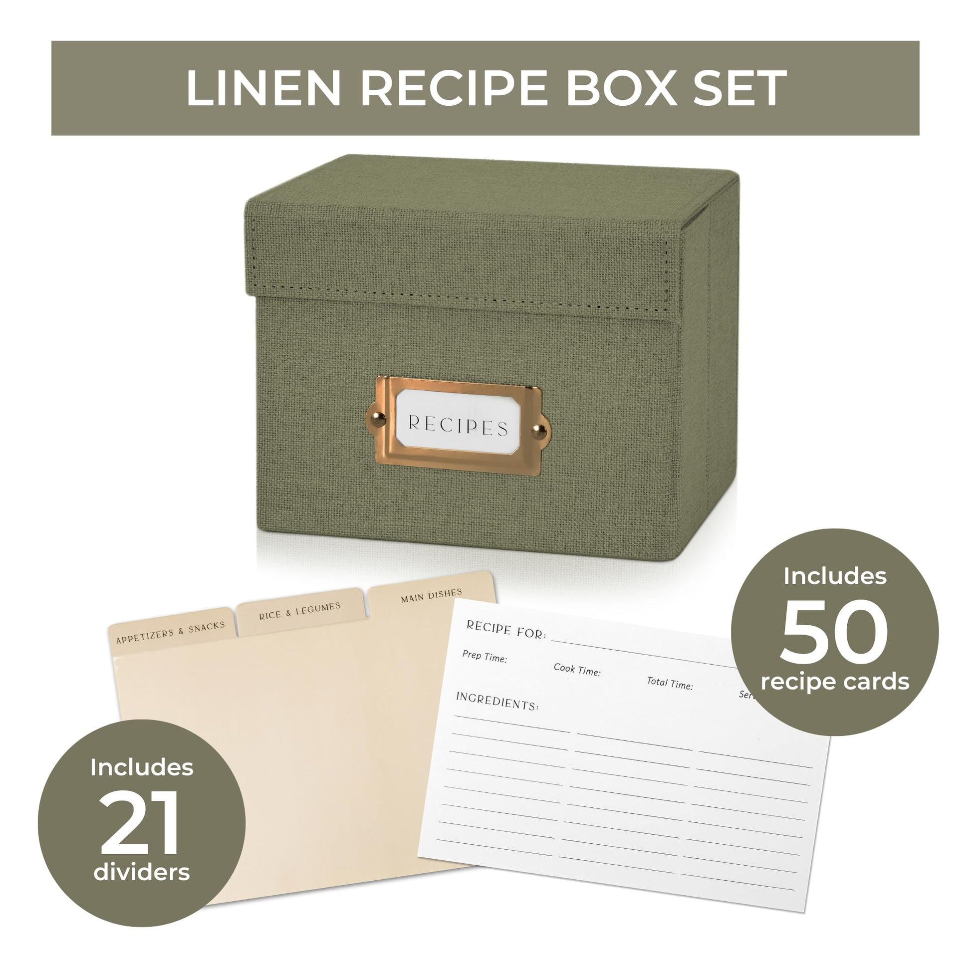 Beautiful Linen Recipe Box Set - Incl. 50x 4x6 inch Recipe Cards and Matching Dividers to Easily Organize Up to 250 Recipes - A Sturdy Card Holder And Great Gift that Perfectly Fits into Any Kitchen