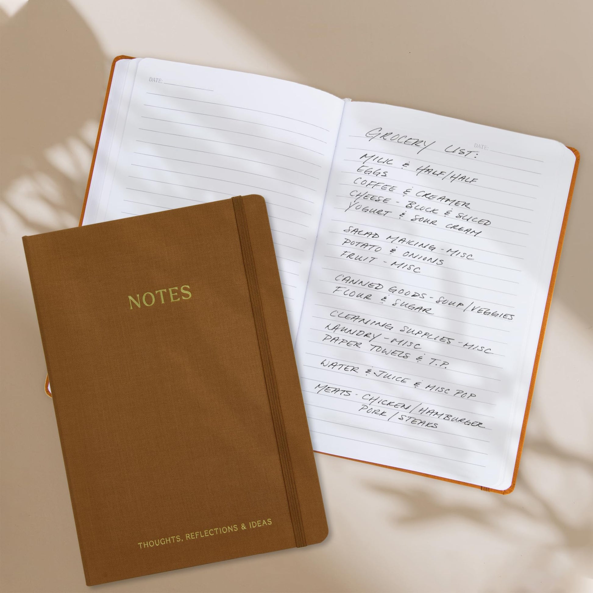 Beautiful Modern Hardcover Journal: Thanks to its gorgeous design with a camel linen hardcover with gold foil lettering and two ribbons, the daily journal notebook is perfect for a variety of professional and personal uses