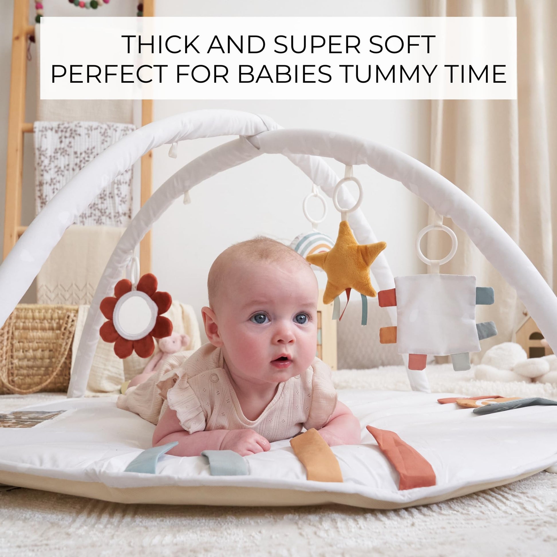 Beautiful Baby Play Gym and Tummy Time Mat - Soft Cotton Mat with 4 Cute Toys & Cards Creates The Perfect Activity Area for Your Girl/Boy - Stylish Infant Floor Playmat for Any Playroom Decor