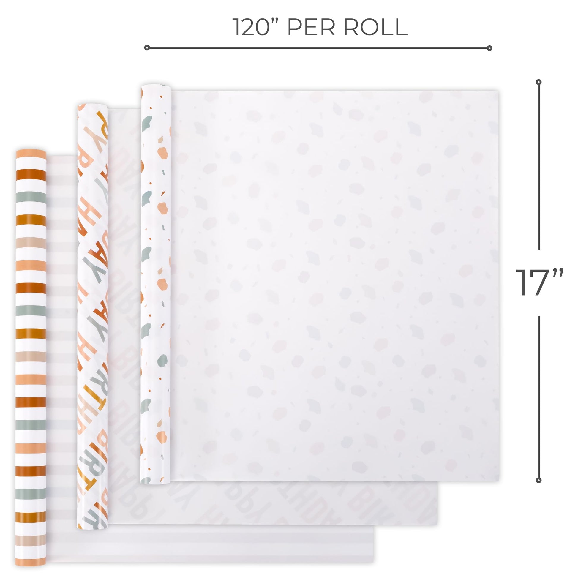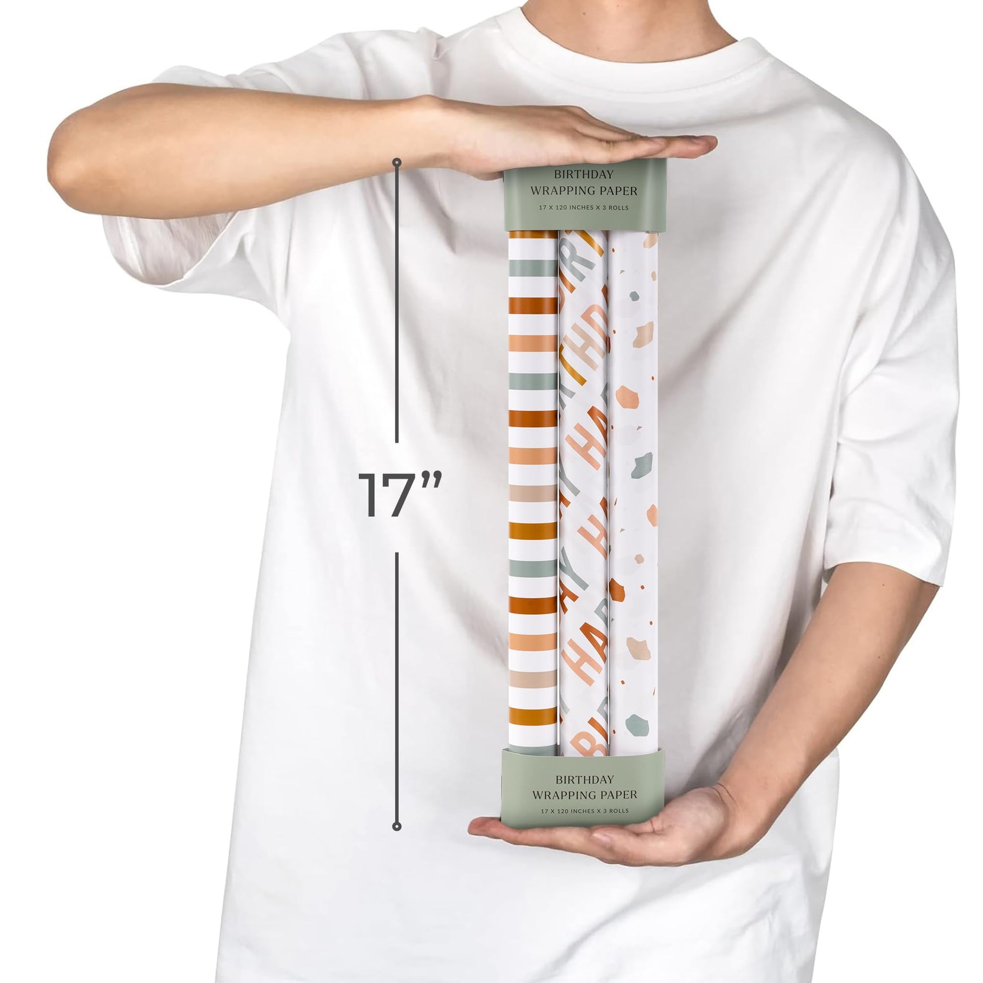 Beautiful Birthday Wrapping Paper - Set of 3 Quality Happy Birthday Paper Rolls For Medium Sized Gifts - Add a Touch of Magic to Every Gift You Wrap - 17 in x 120 in Per Roll For Boys and Girls