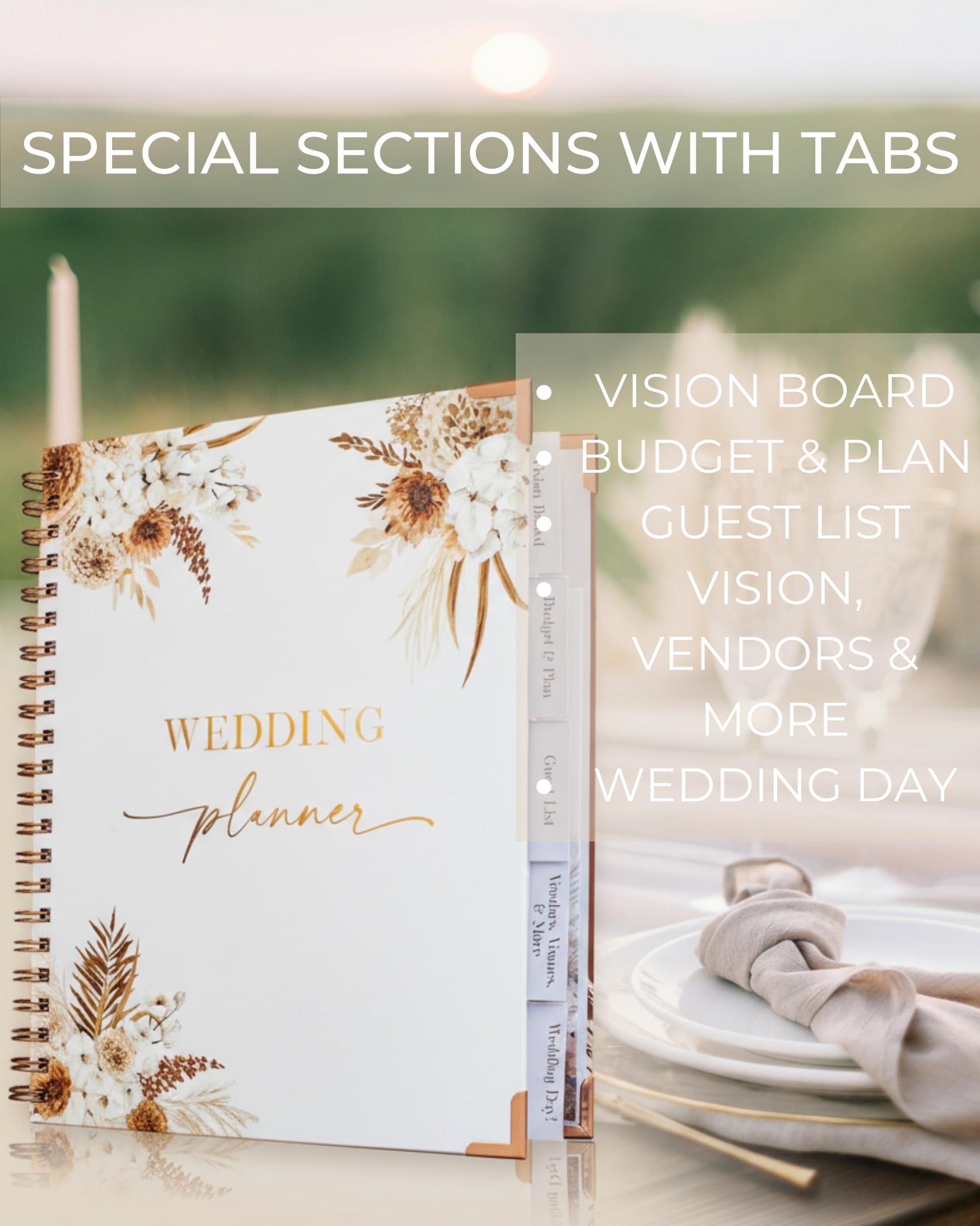 - Beautiful Design - Plan Your Wedding In Style: The wedding book planner comes in a gorgeous Pampas Grass and Boho Flowers Design w/ a lovely, elegant cover, rose golden spiral wire & edges as corner protectors! Sure to become a cherished keepsake that you’ll love to browse through in later years