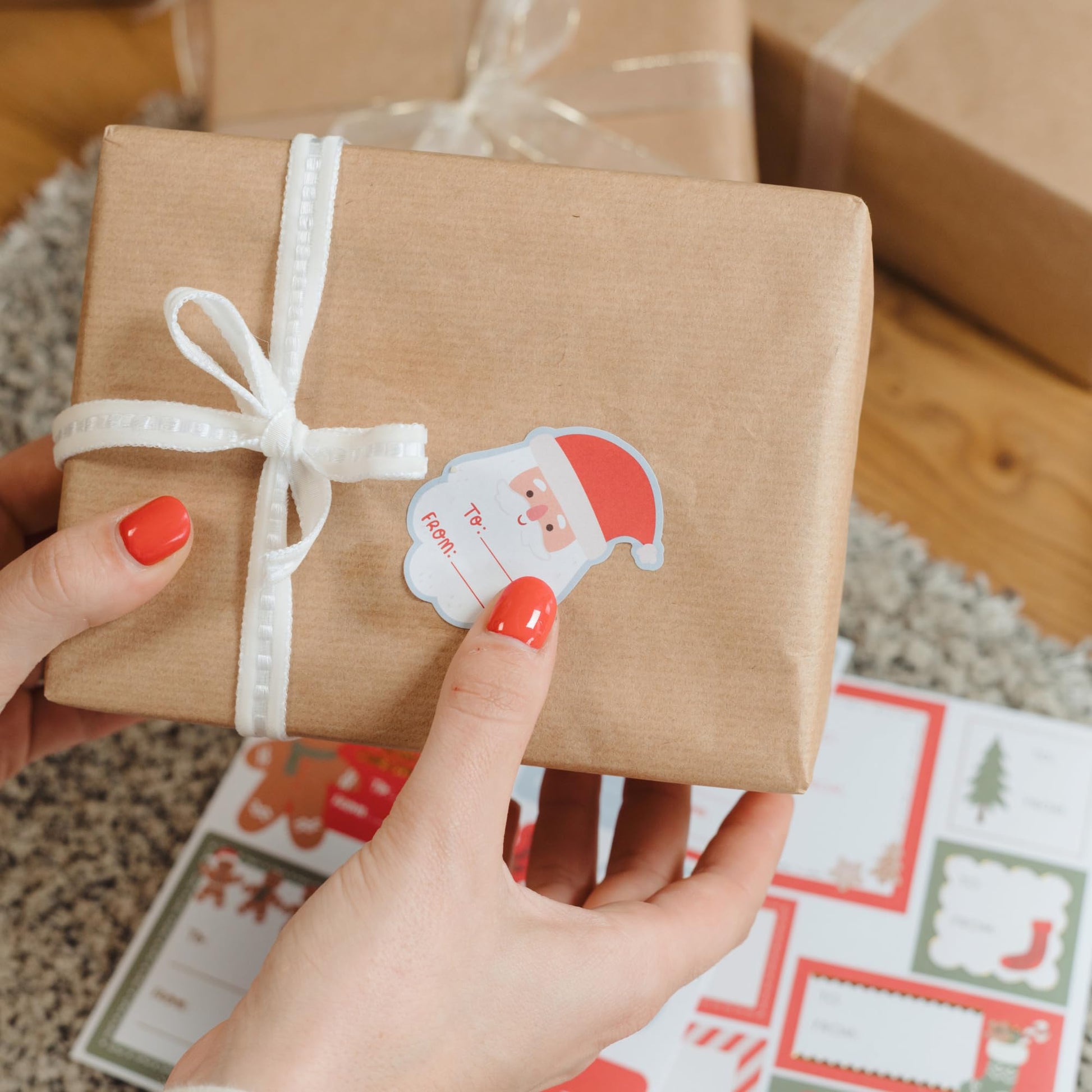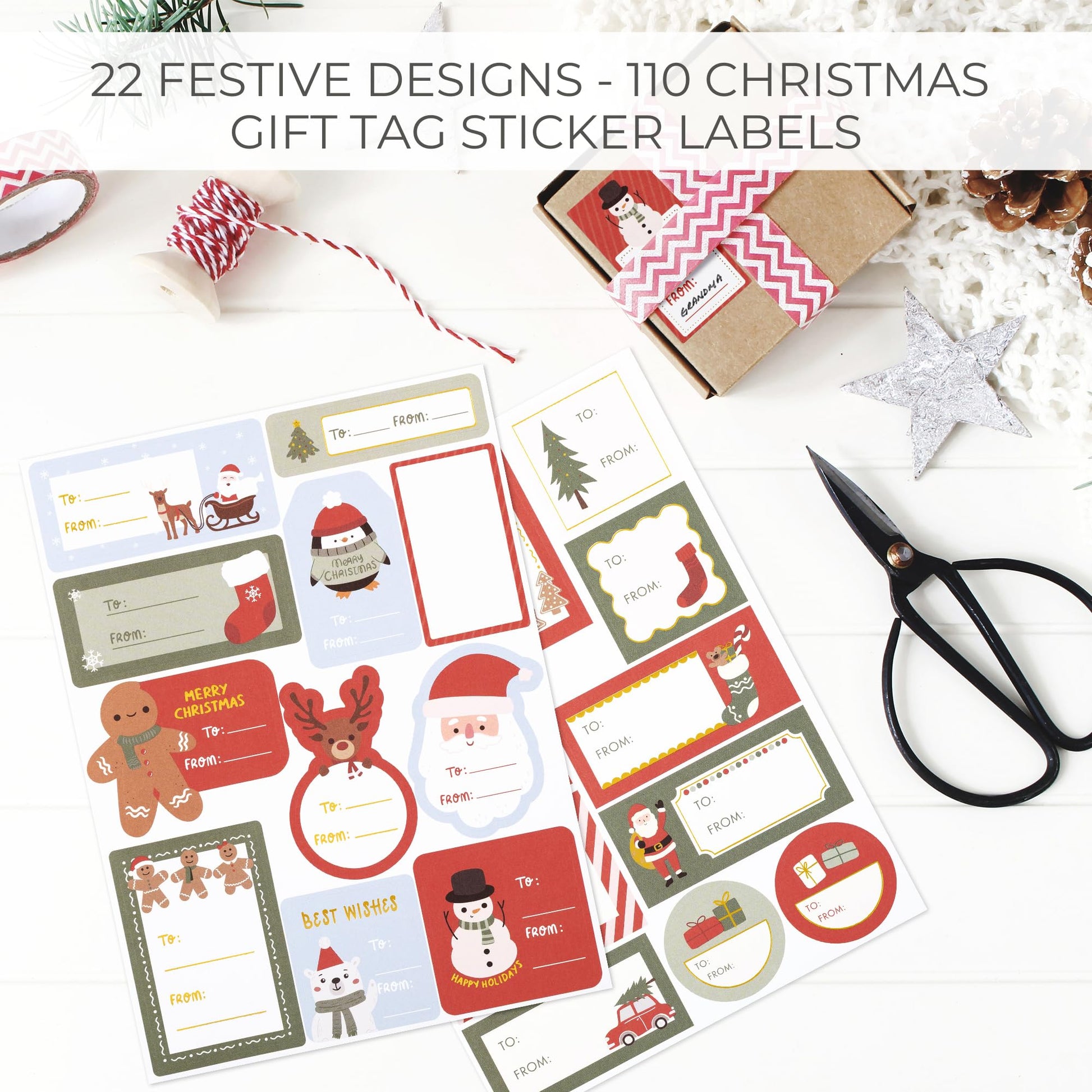 - Deck the Gifts with Holiday Cheer: Sprinkle magic under the tree with 110 self-adhesive Christmas gift tags stickers! From Santa and reindeer to other Xmas favorites, the Christmas labels for gifts add charm & character - making gift wrapping a joyful part of your family traditions