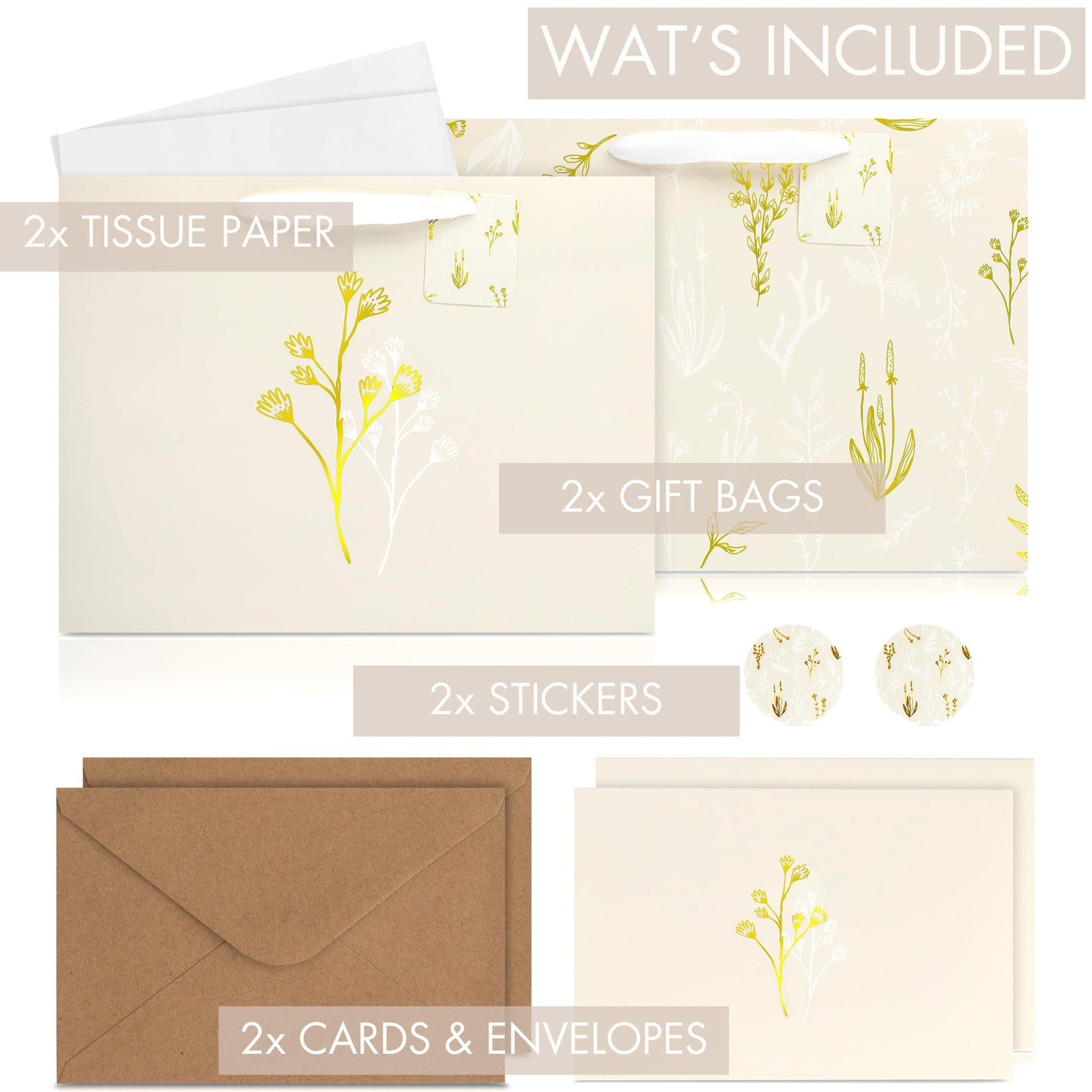 - Ultimate Set For Easy & Convenient Gift Giving: All you need to package your gift beautifully to enhance the element of surprise & joy for the recipient - 2x birthday gift bags w/ tag, 2x cards w/ envelopes & stickers and on top of that 2x wrapping tissue papers
