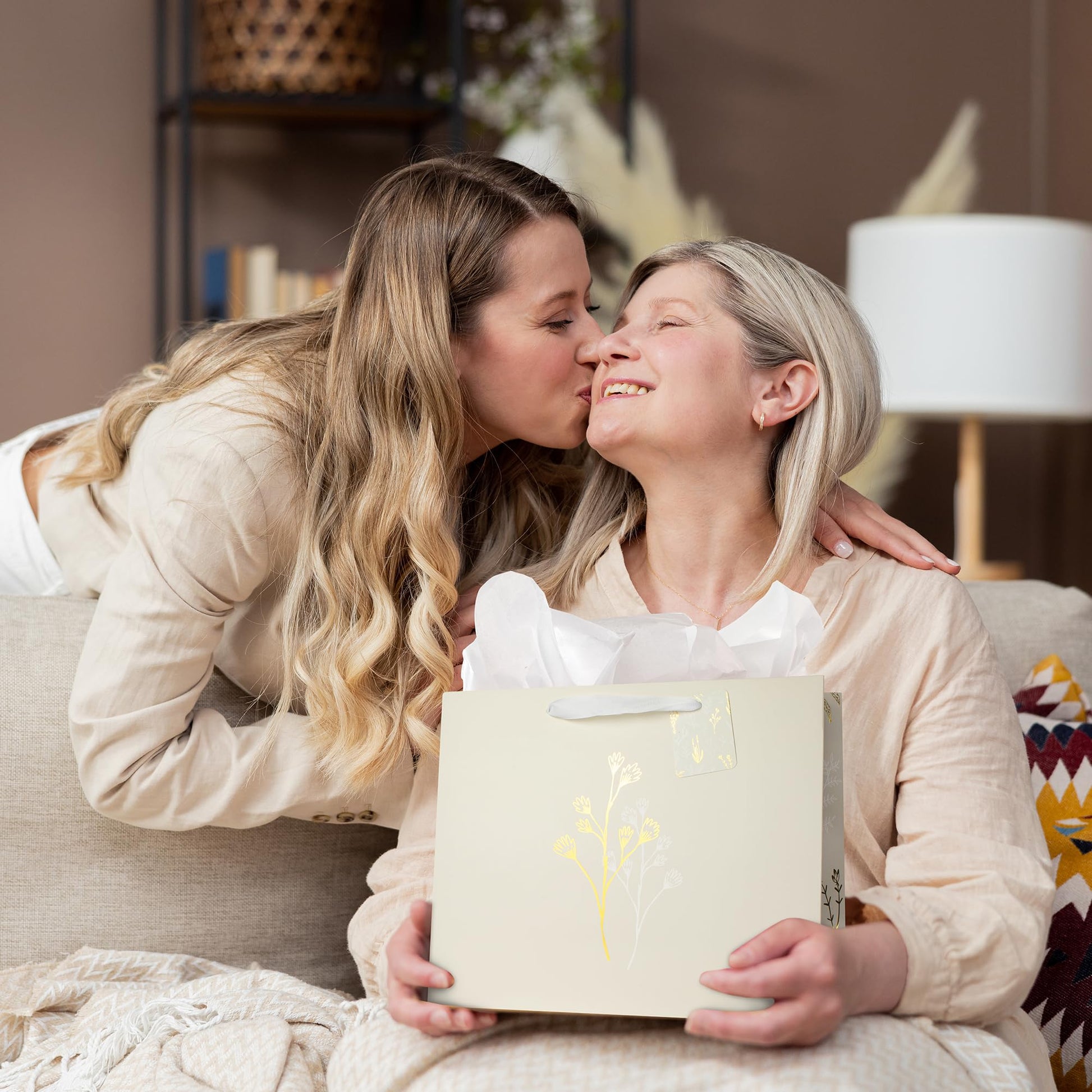 - Wrap It Up Like A Pro: What a gorgeous complement to the gift packaging! Enjoy the decorative wrapping tissue papers that come with the gift bags, one in classic white, the other one in a matching beige color - the perfect addition to each large gift bag