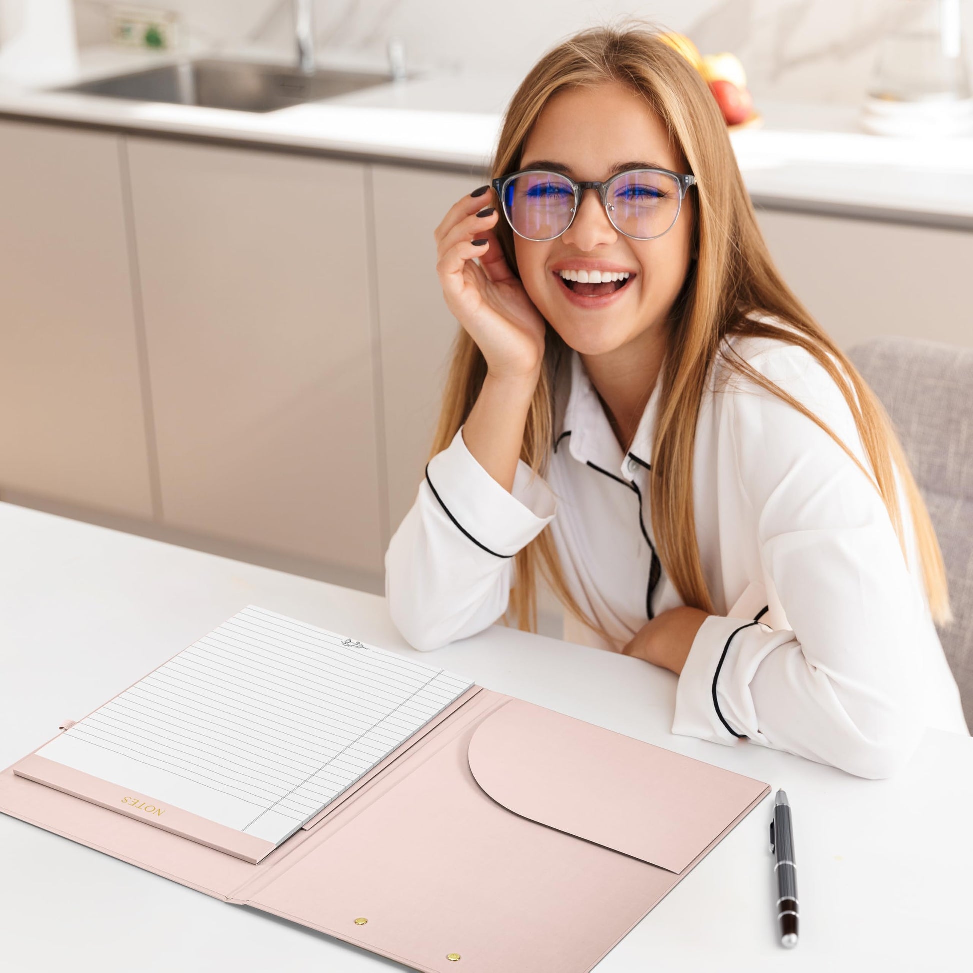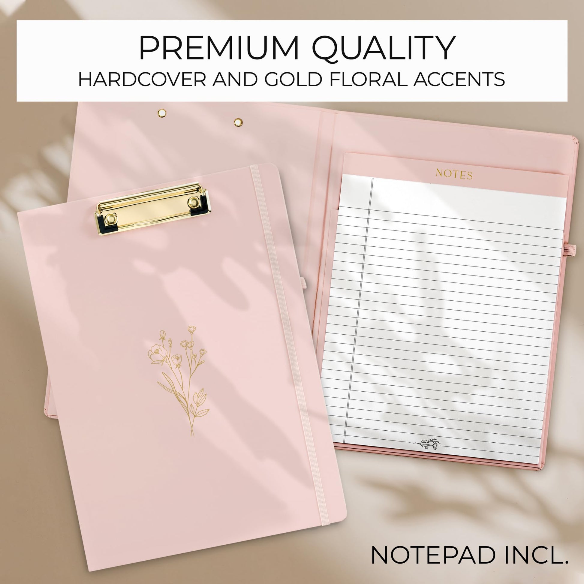 Aesthetic Clipboard Folio with Refillable Lined Notepad & Interior Pocket - Cute Padfolio/Legal Pad Holder for Women - Easily Organize Notes at Work, School, or Home