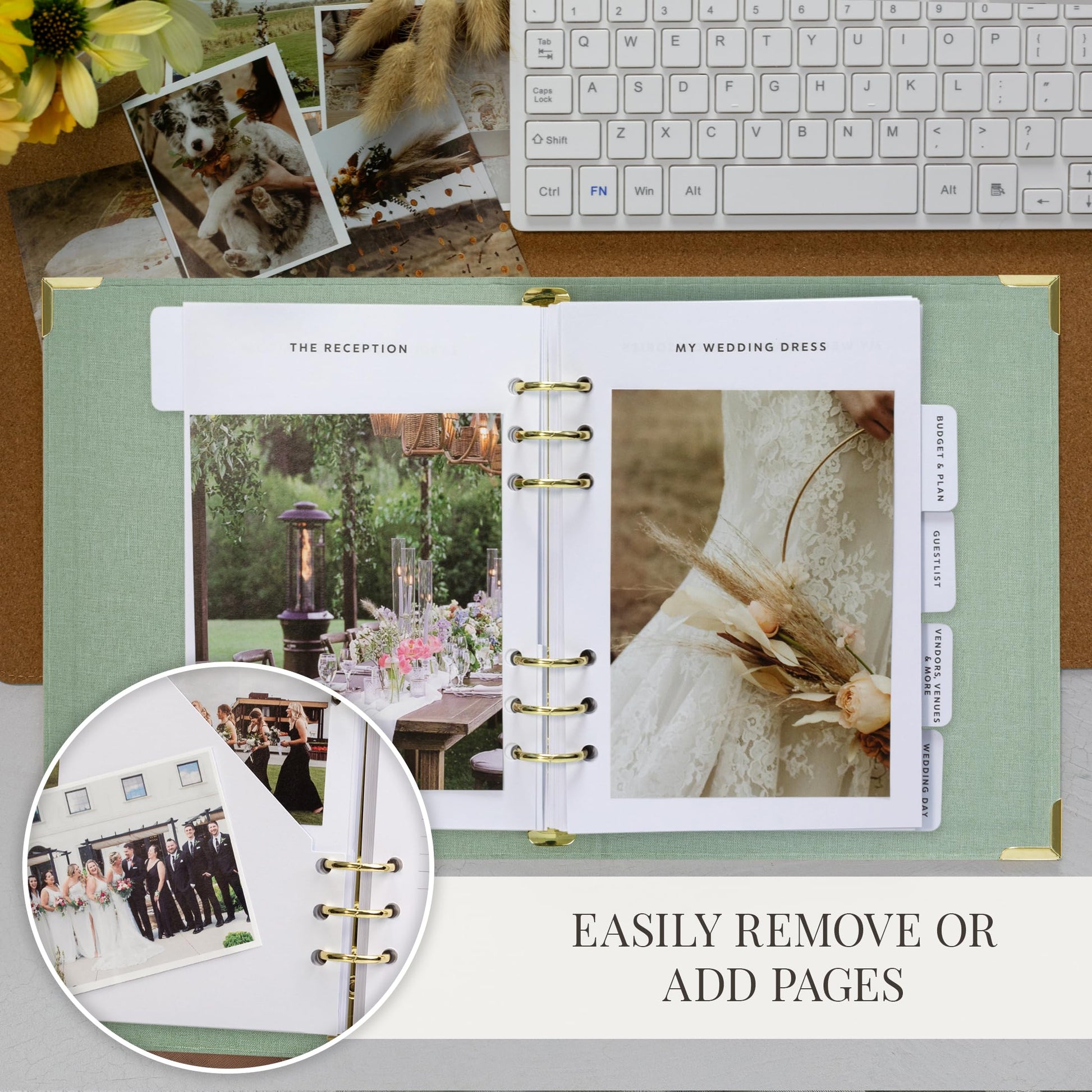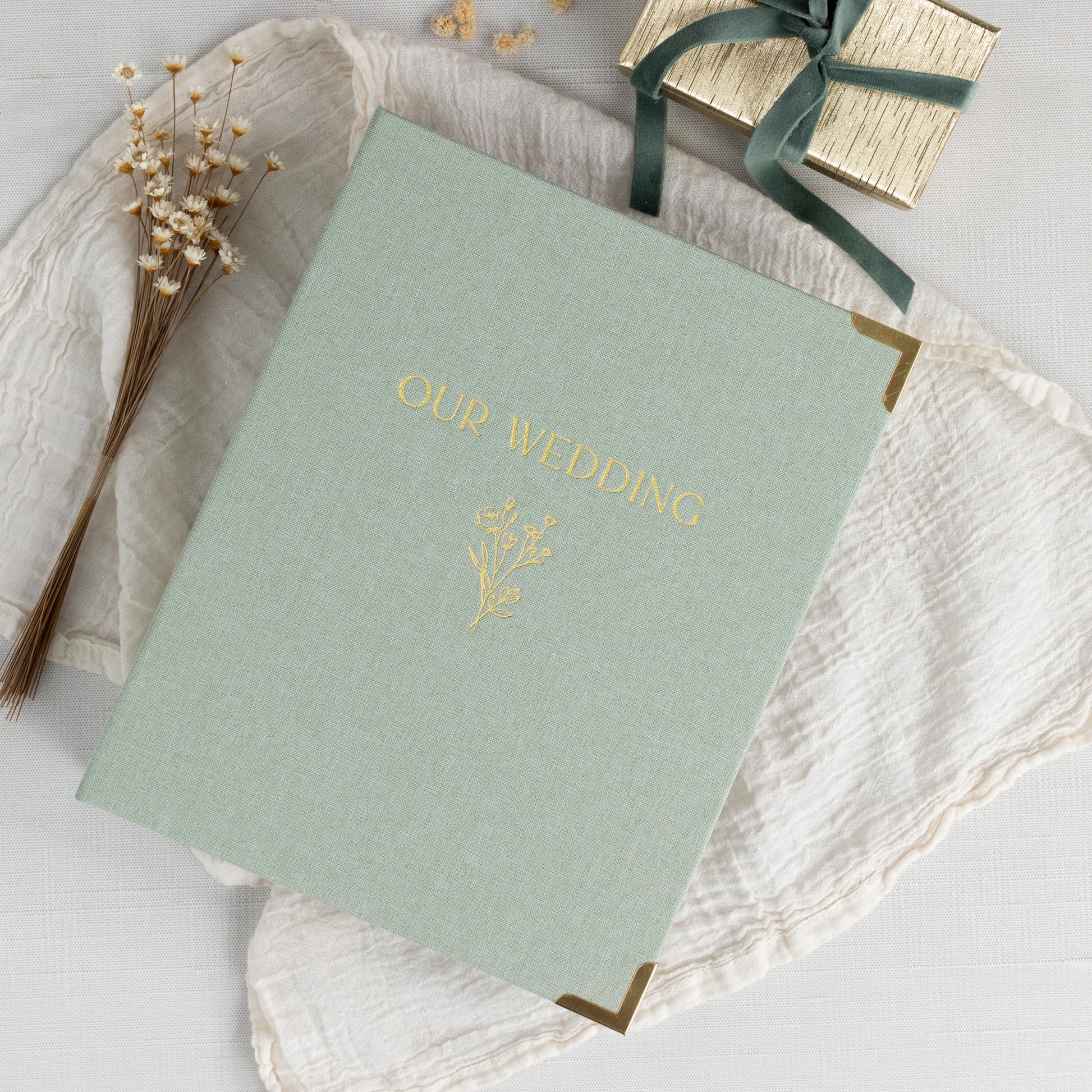 Beautiful Sage Linen Design - Plan Your Wedding In Style: The wedding planner comes in a modern minimalistic design w/ a lovely, elegant sage green linen cover! Sure to become a cherished keepsake that you’ll love to browse through in later years