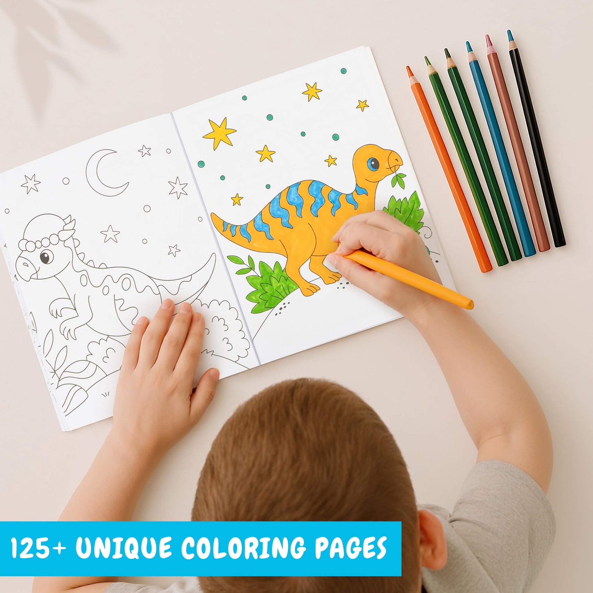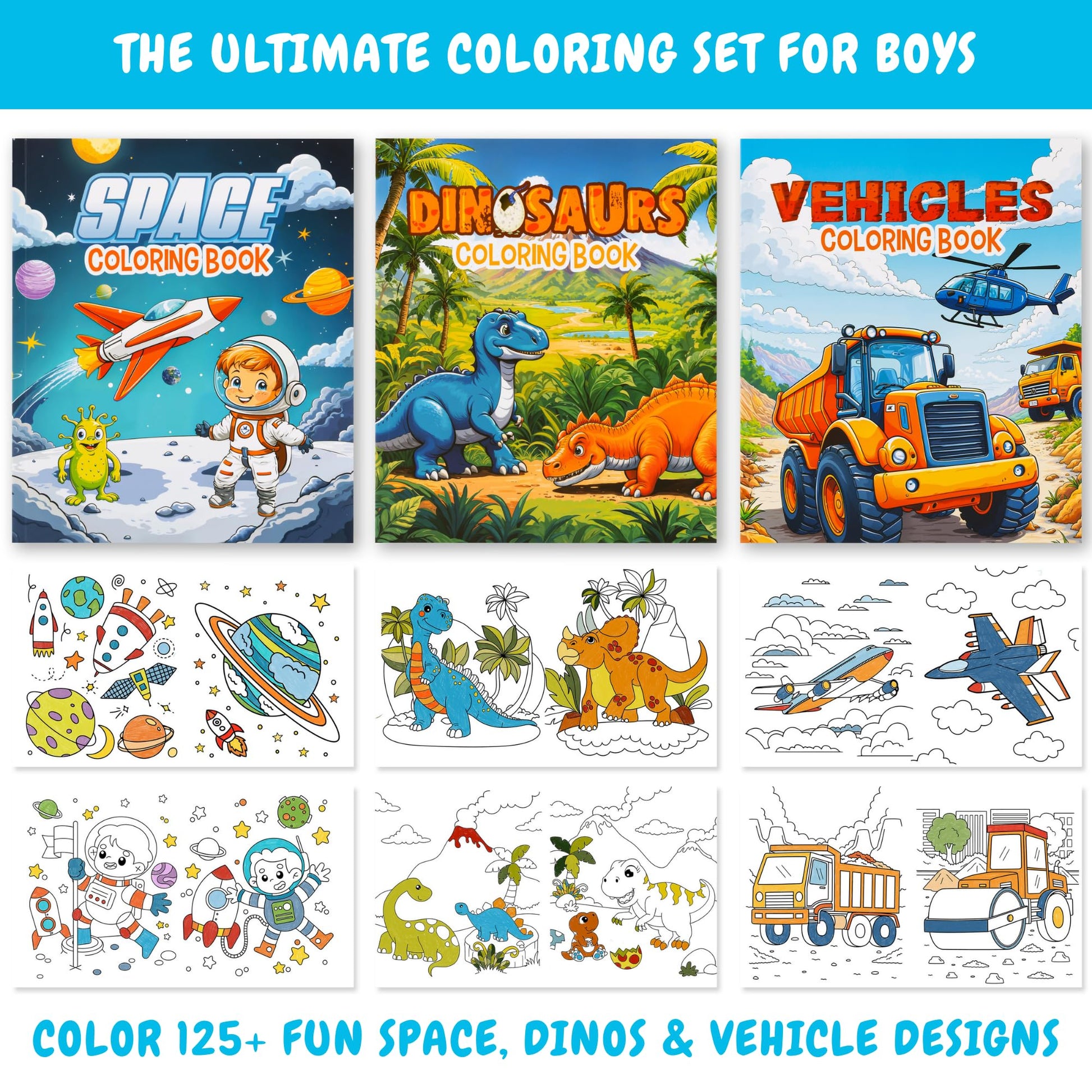 ZICOTO Fun Coloring Books for Kids Set of 3 - Exciting Dinosaur, Space & Trucks Coloring Book for Boys Ages 4-8 - Easy to Color Gift for Your Creative Little One