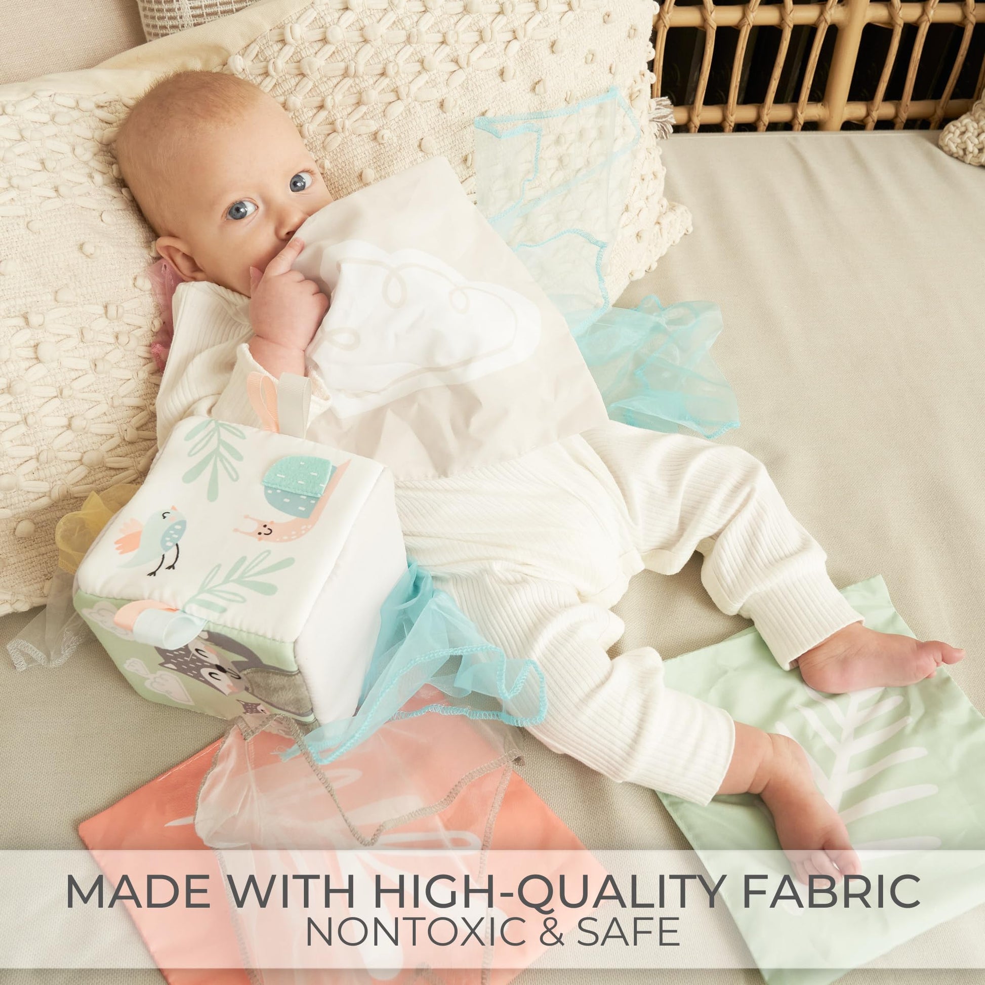 Fun Baby Tissue Box with Stimulating Mirror For Endless Entertainment - Soft Montessori Toy w/ Crinkle Paper & Fabric Tissues - The Perfect Sensory Toy For Newborn/Infant Development From 6-12+ Months