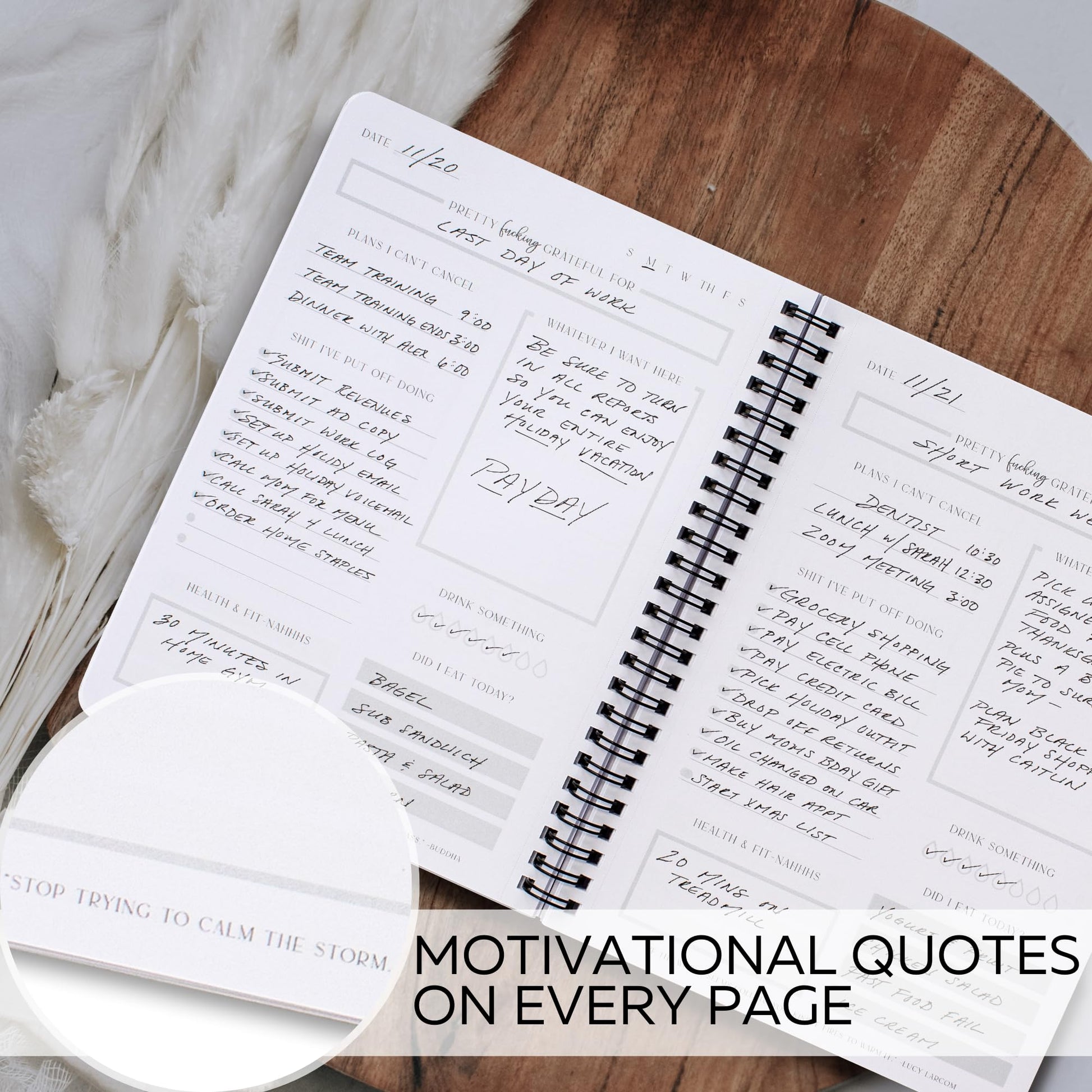 - Stay Motivated As Hell & Achieve Awesome Things: While tracking progress is the great thing itself, the daily list planner even makes the journey more stunning with motivational quotes & a dedicated space for your gratitude practice