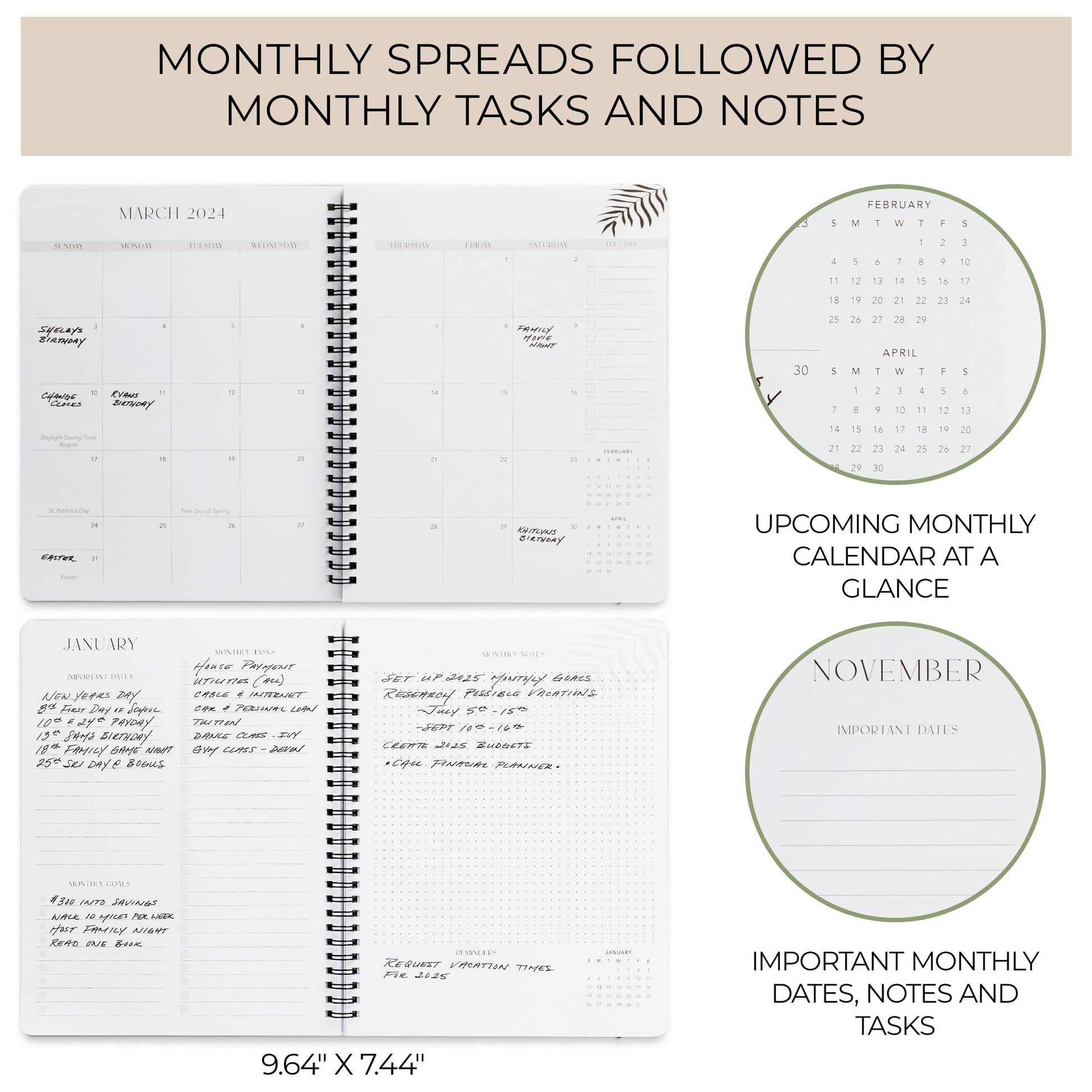 - Super Easy To Stay On Top Of Things: Thanks to the simplified and straightforward monthly view of the monthly planner 2024-2025 planning ahead is easy & efficient, making it a breeze for you to keep track of your appointments, birthdays, business meetings, kids’ baseball practice and more - don’t forget to schedule some pampering “me-time” for yourself