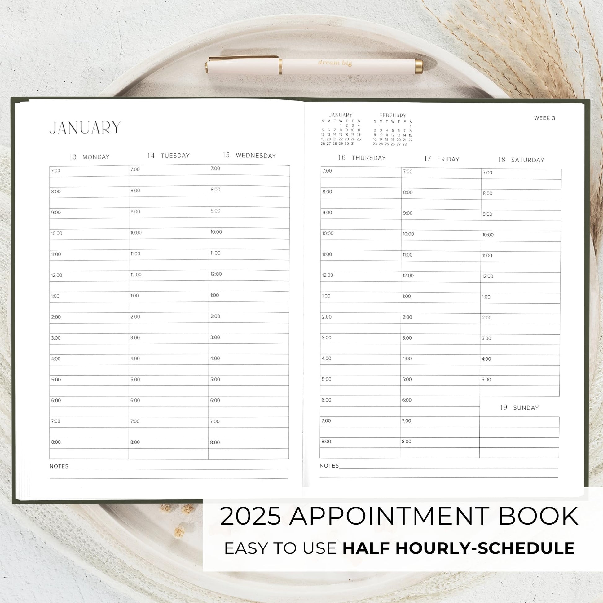 Beautiful 2025 Appointment Book Planner - Sturdy Linen Daily Planner & Weekly Calendar with Half Hourly Schedule Easily Keeps Track Of All Your Appointments - The Perfect Day by Day Organizer