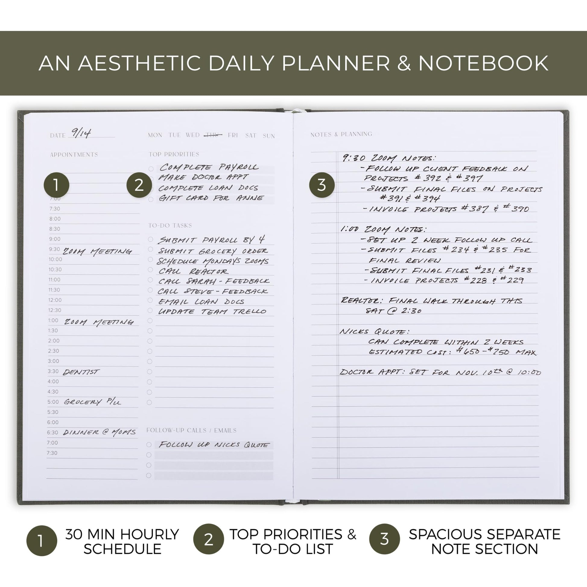 Aesthetic Daily Planner And Notebook With Hourly Schedule - Modern Hardcover To do List Notepad to Easily Organize Your Work Tasks And Appointments - The Perfect Book for School & Office Supplies