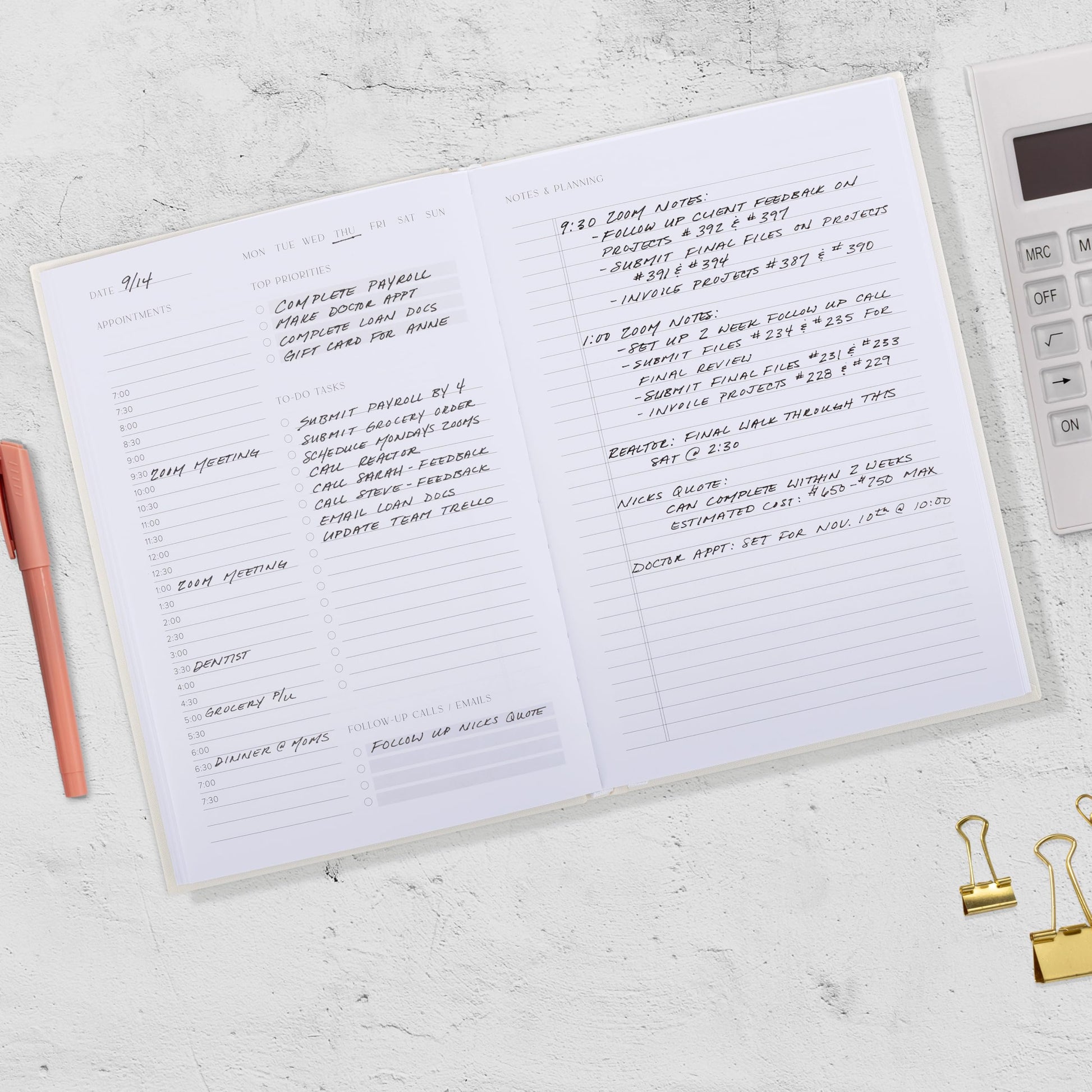 Plenty Of Space For Efficient Planning: Stay focused & manage your time wisely! The 9.3x6.5”work planner & organizer notebook offers ample space for 80 days of life-changing planning with each day being spread across 2 pages - set yourself up for purposeful days