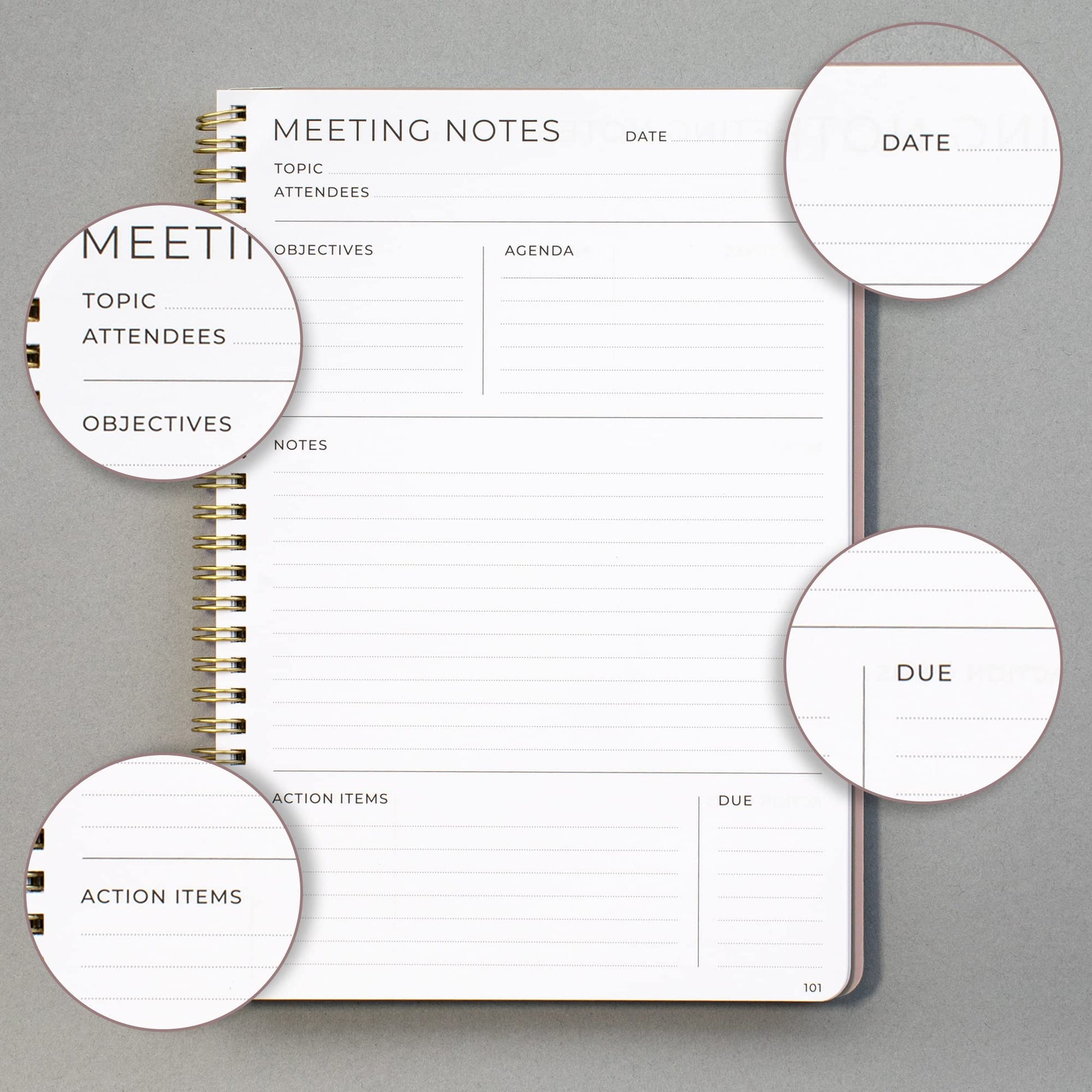 - Work Notebook : Note taking made easy - simply jot down your notes in the well structured organizer work notebook! Easily keep track of your business meetings & appointments, capturing all key points neat & tidy with ZICOTOs’ professional meeting notebook