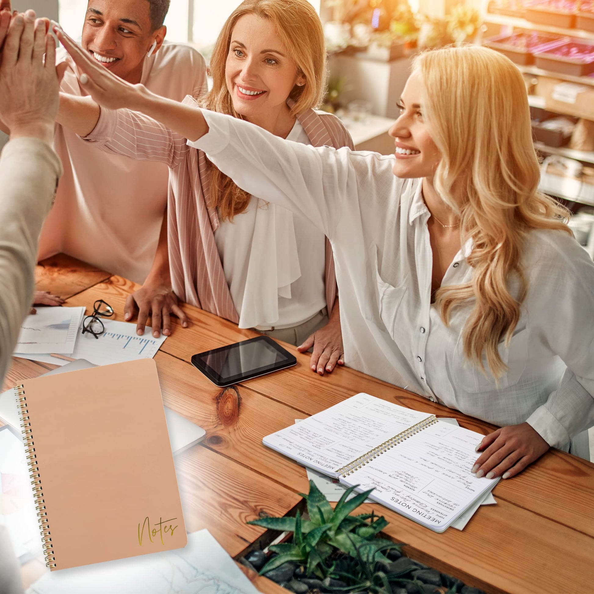 - Beautiful Professional Design: Keep up with all your meeting notes in style! The business notebook features a sleek design all the way. Fresh pink-apricot color, rounded edges and as a highly sophisticated finish with a golden wire-binding, as well as lettering in gold foil