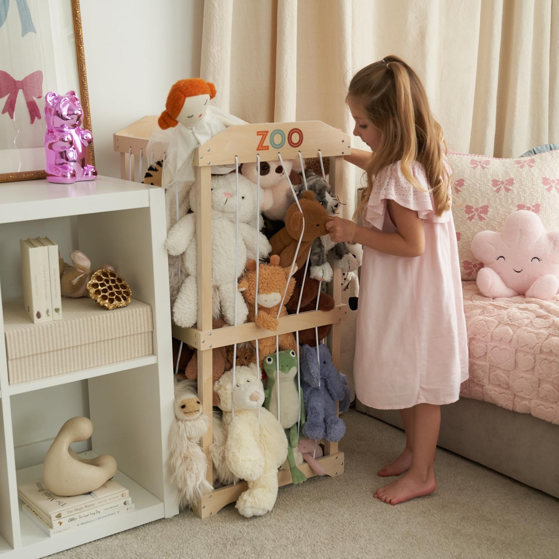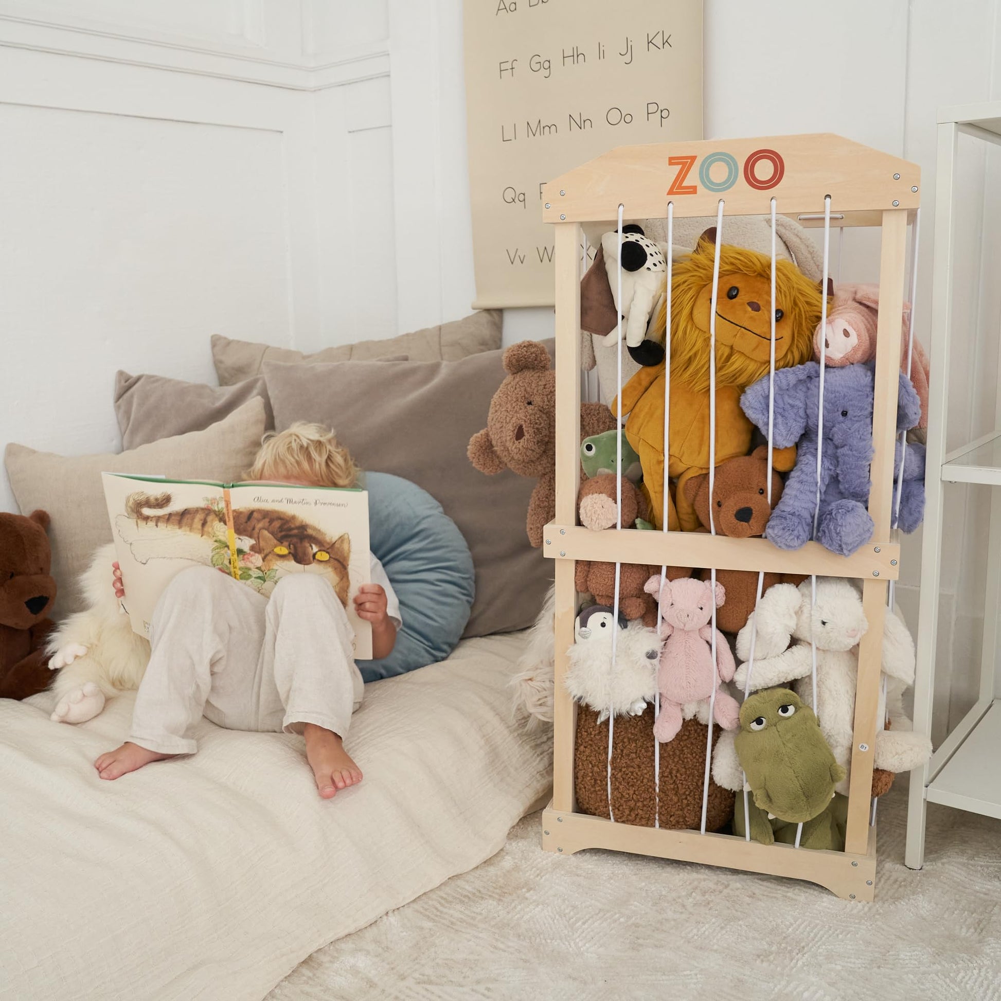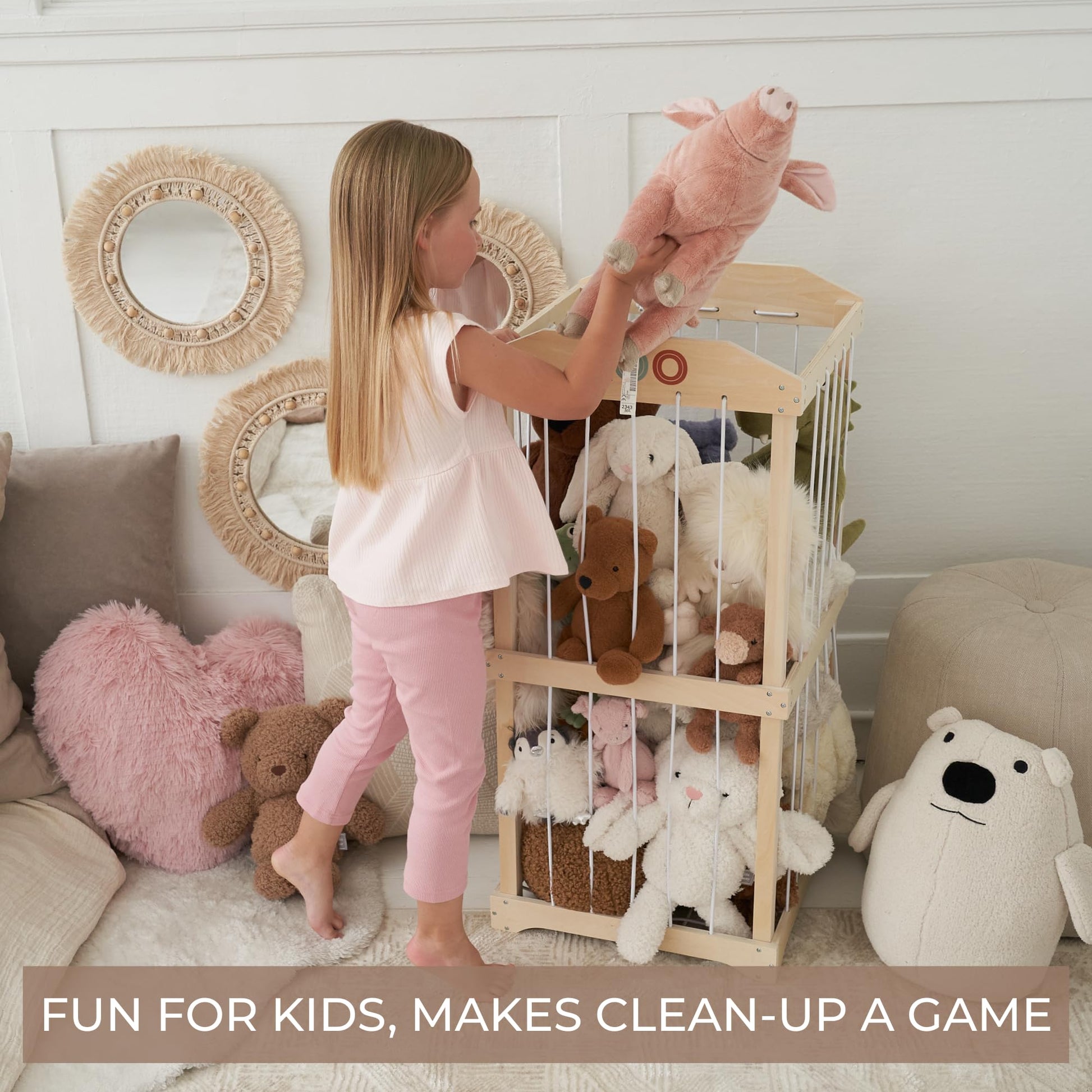 Wooden Stuffed Animal Storage for Kids - Large Toy Storage Organizer & Holder for Your Kids Playroom or Nursery - Easy to Assemble Stuffed Animal Zoo That Keeps Plush Friends Ready for Snuggles