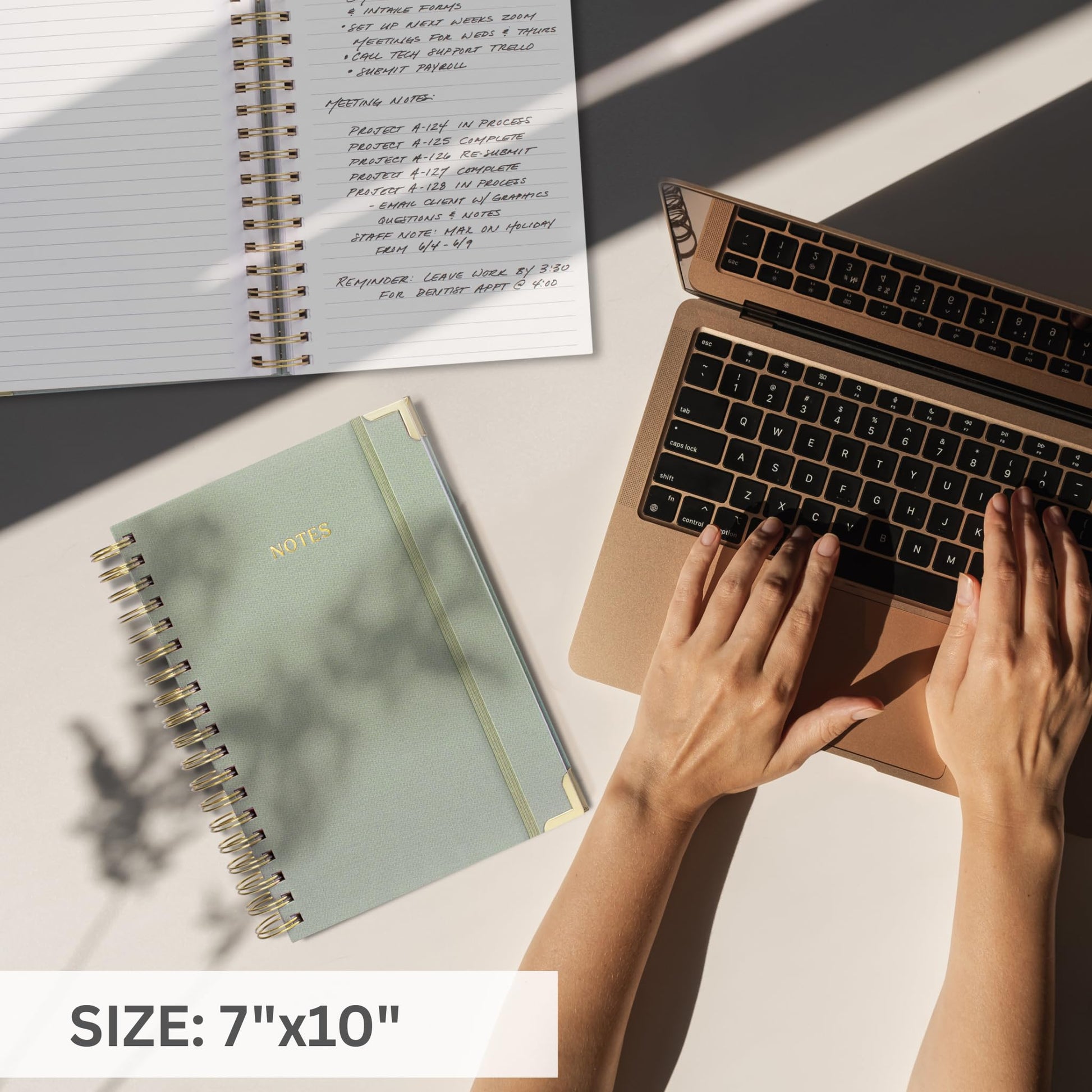 - Beautiful Modern Notebook Journal For Women & Men: Thanks to its gorgeous design with golden edges, a sage green linen hardcover with gold foil lettering and a golden wire, the spiral journal notebook is perfect for a variety of professional and personal uses