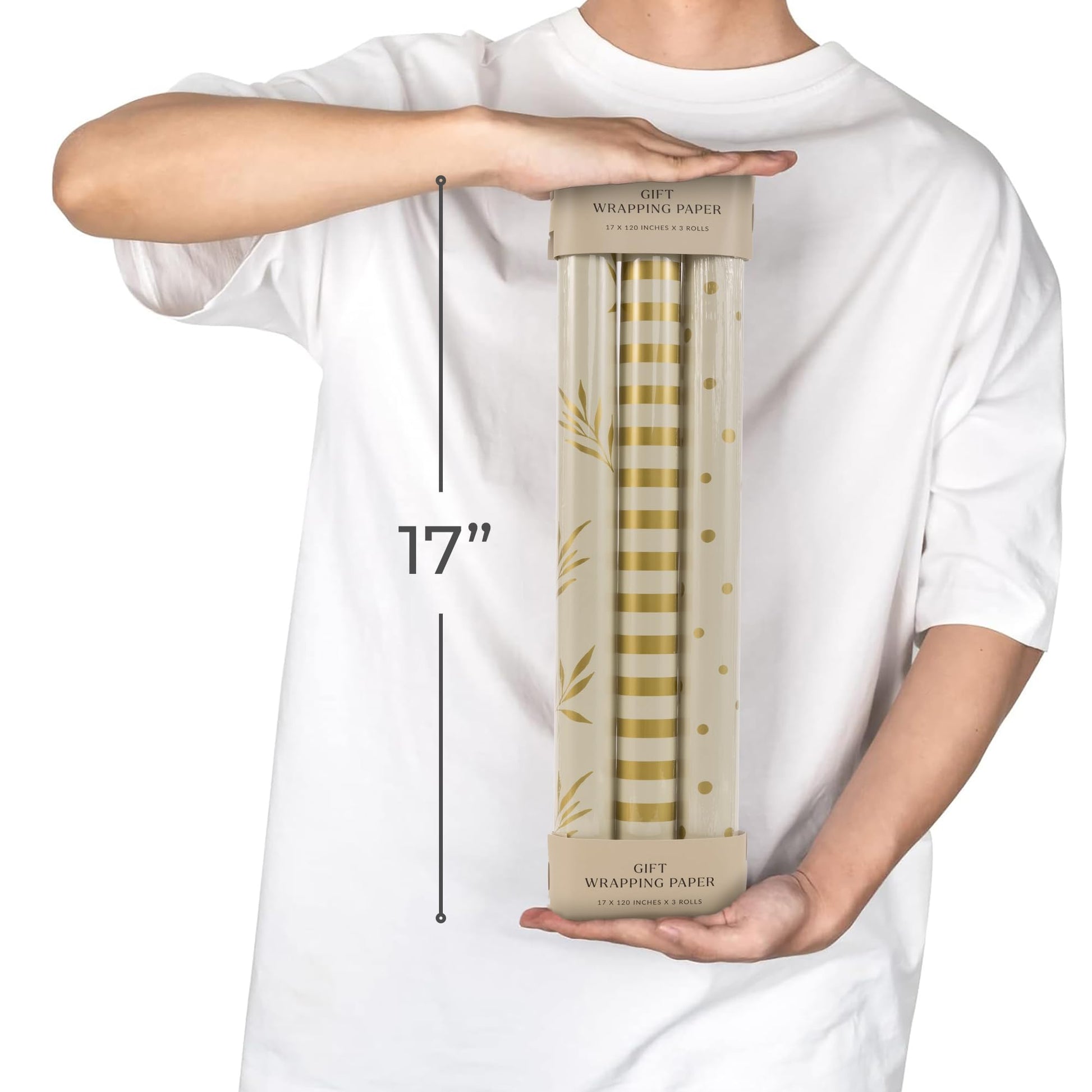 ZICOTO Beautiful Gift Wrapping Paper Rolls for All Occasions - Set of 3 Quality Rolls For Wedding, Birthday, Baby Shower & Christmas - Add a Touch of Magic to Every Gift You Wrap - 17 x 120 in