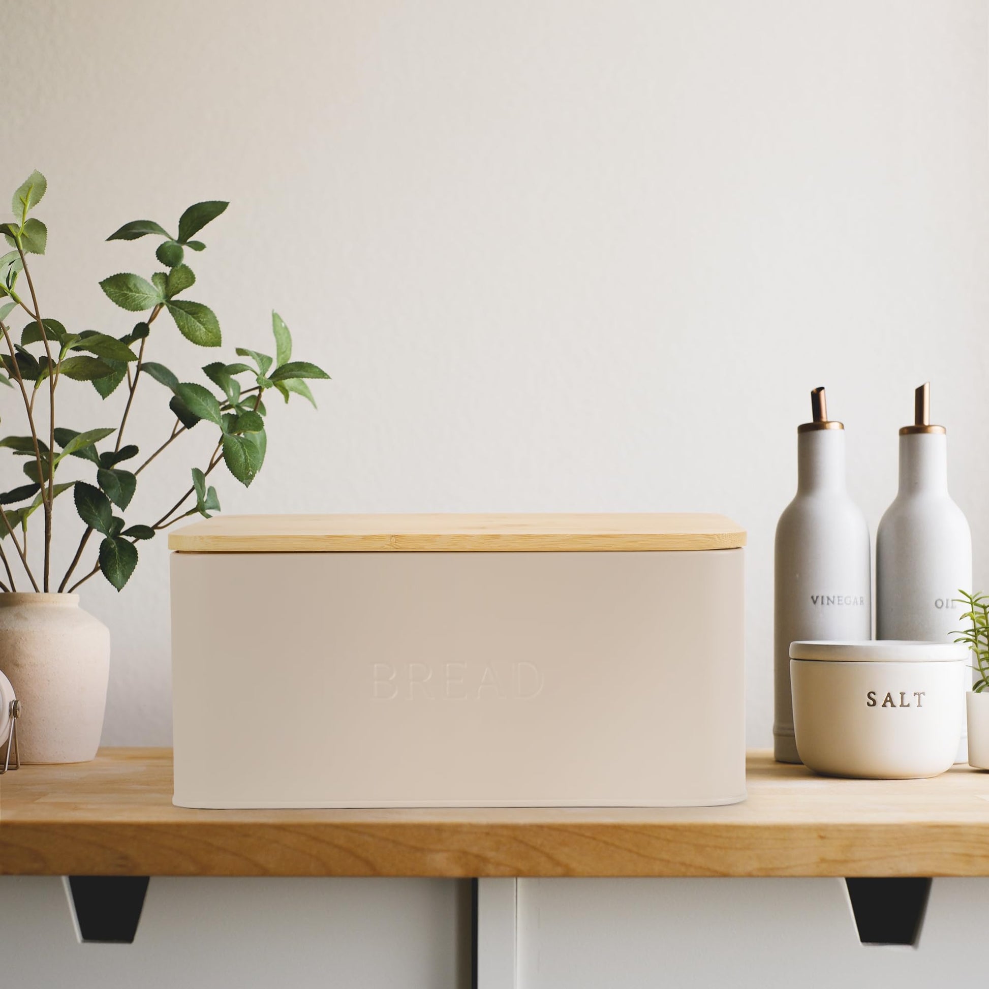 Stylishly Charming Addition to Your Kitchen: Spruce up your kitchen with the aesthetic bread box for kitchen countertops. The timeless fog color finish and bamboo lid bring a fresh, modern vibe that's sure to catch the eye and complement any decor beautifully