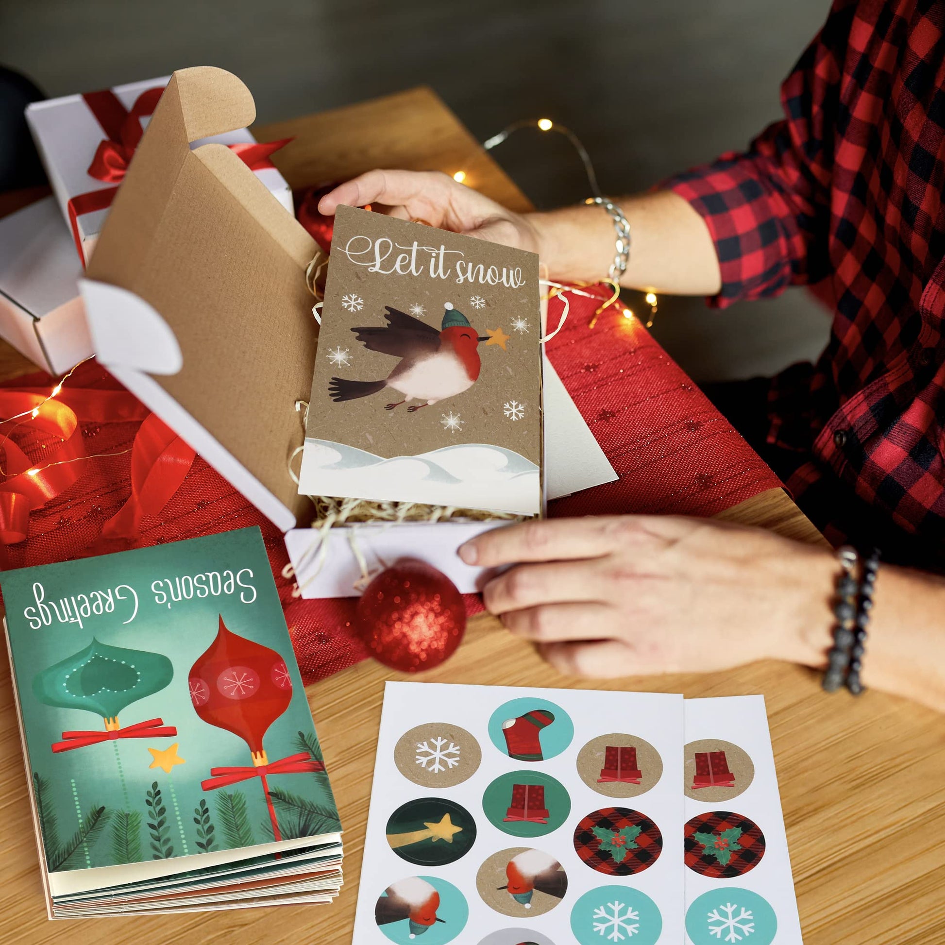 ZICOTO Beautiful Christmas Cards Set of 24 - Incl. Bulk Envelopes, Matching Stickers And Storage Box - Perfect to Send Warm Holiday Wishes to Friends and Family