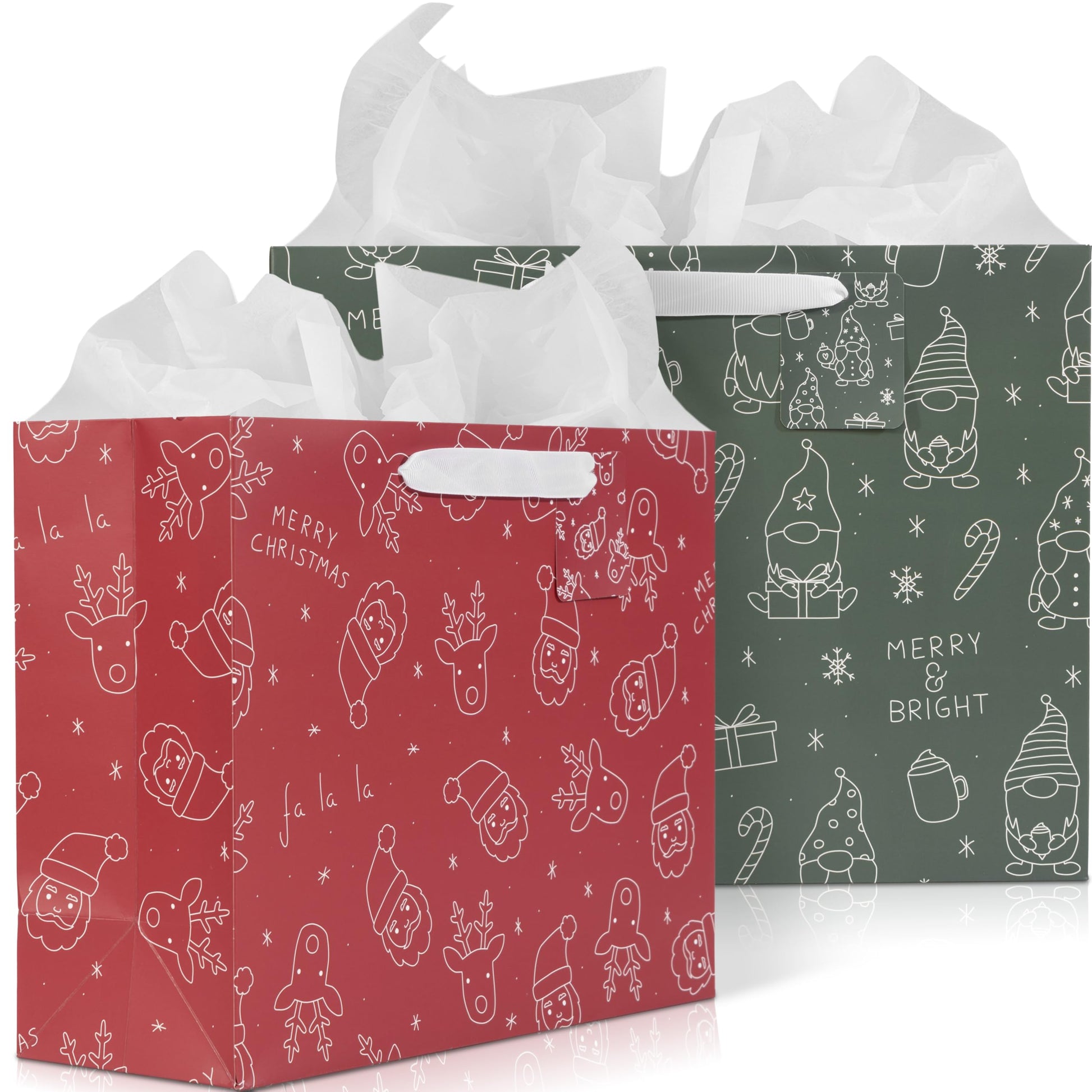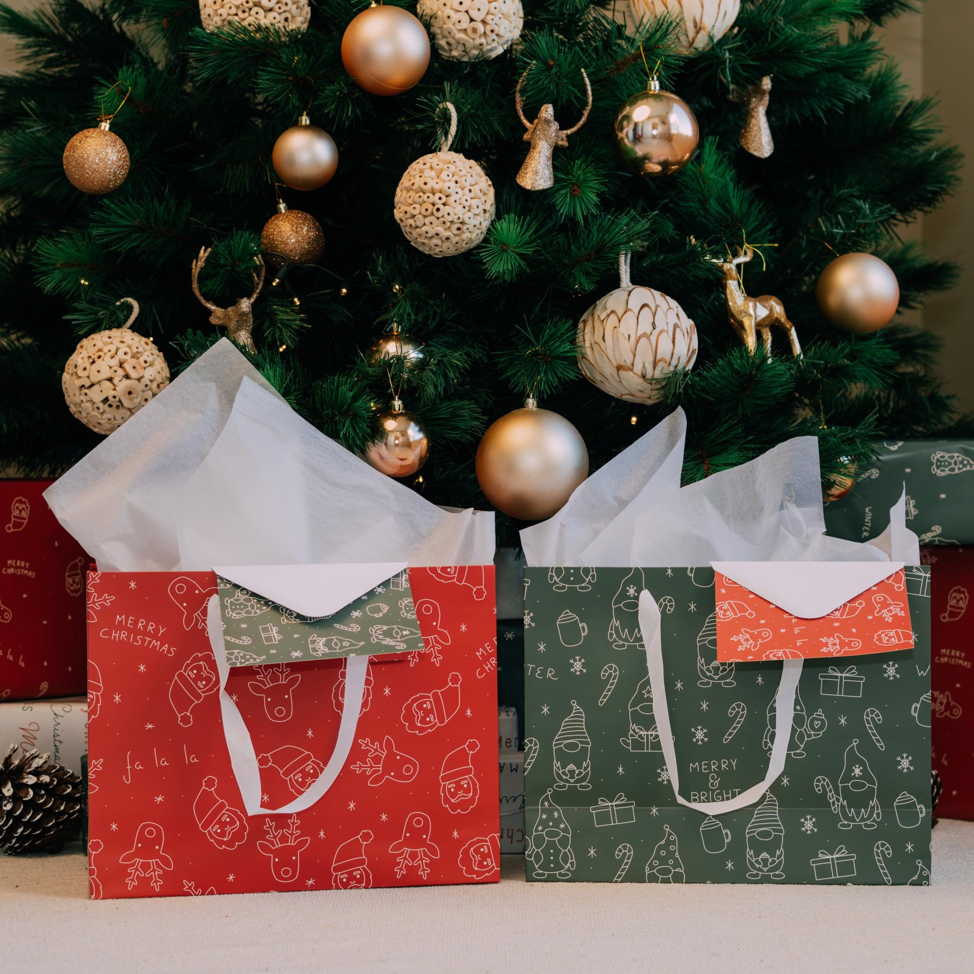 Cheerful Design, Holiday Charm: The Christmas bags make your gifts as delightful on the outside as they are on the inside! With cheerful holiday patterns and two festive colors, your gifts will stand out and spread Christmas magic before they're even opened