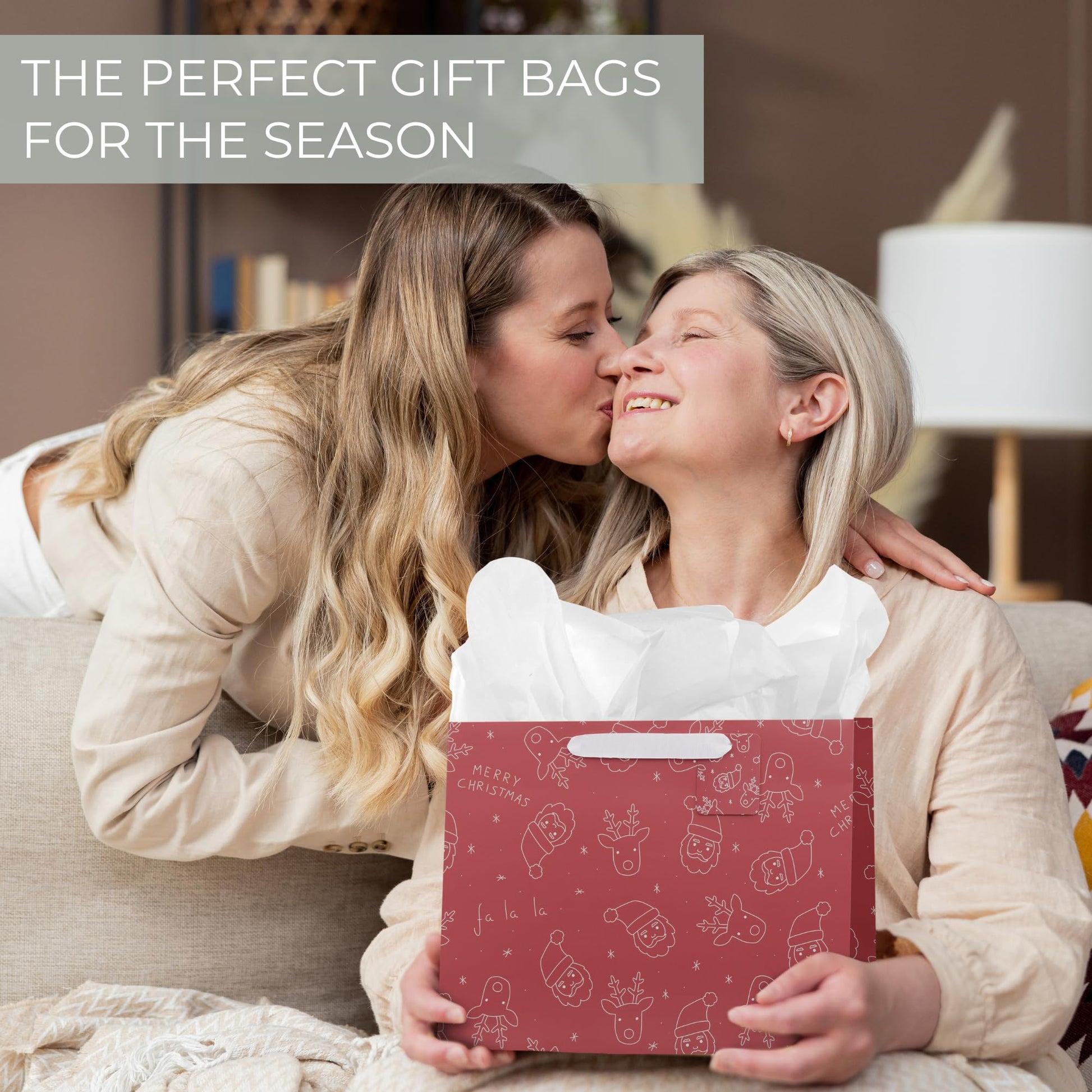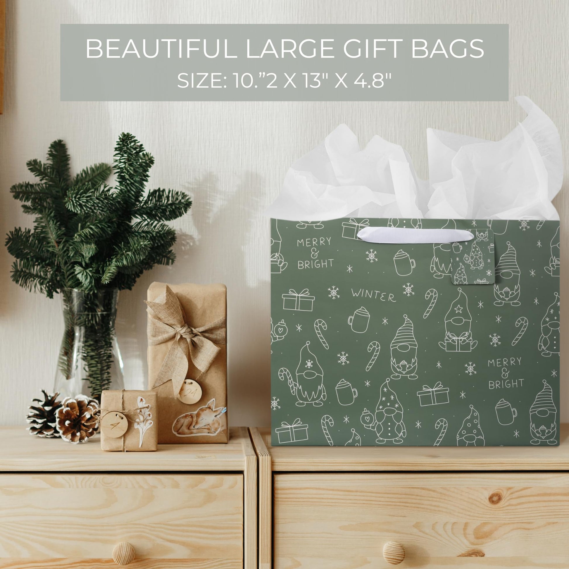 ZICOTO Beautiful Christmas Gift Bags - Large 13" Bags with Handles incl. Matching Tissue Paper, Cards & Stickers - Reusable and Perfect For Your Xmas Presents