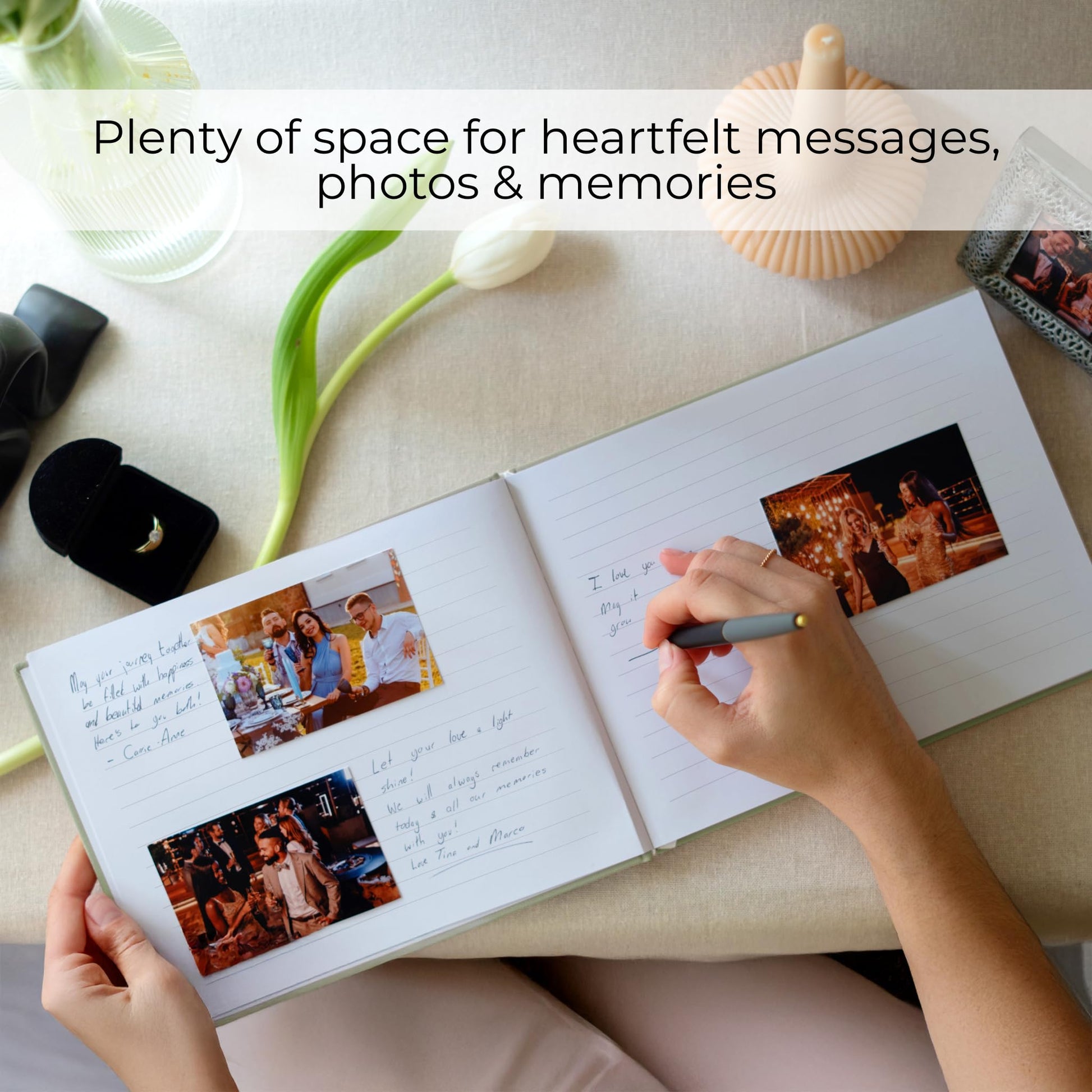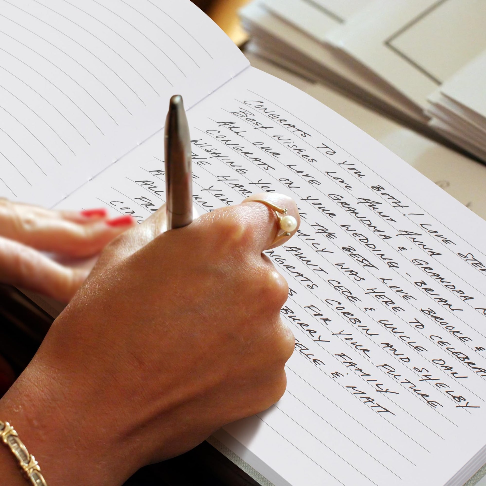 - Perfectly Sized Keepsake: Whether for an intimate wedding or a large wedding party, with 50 lined sheets the book offers ample space for all your guests to leave a loving message! At 9x7” it has just the right size - plenty of space, without being too big