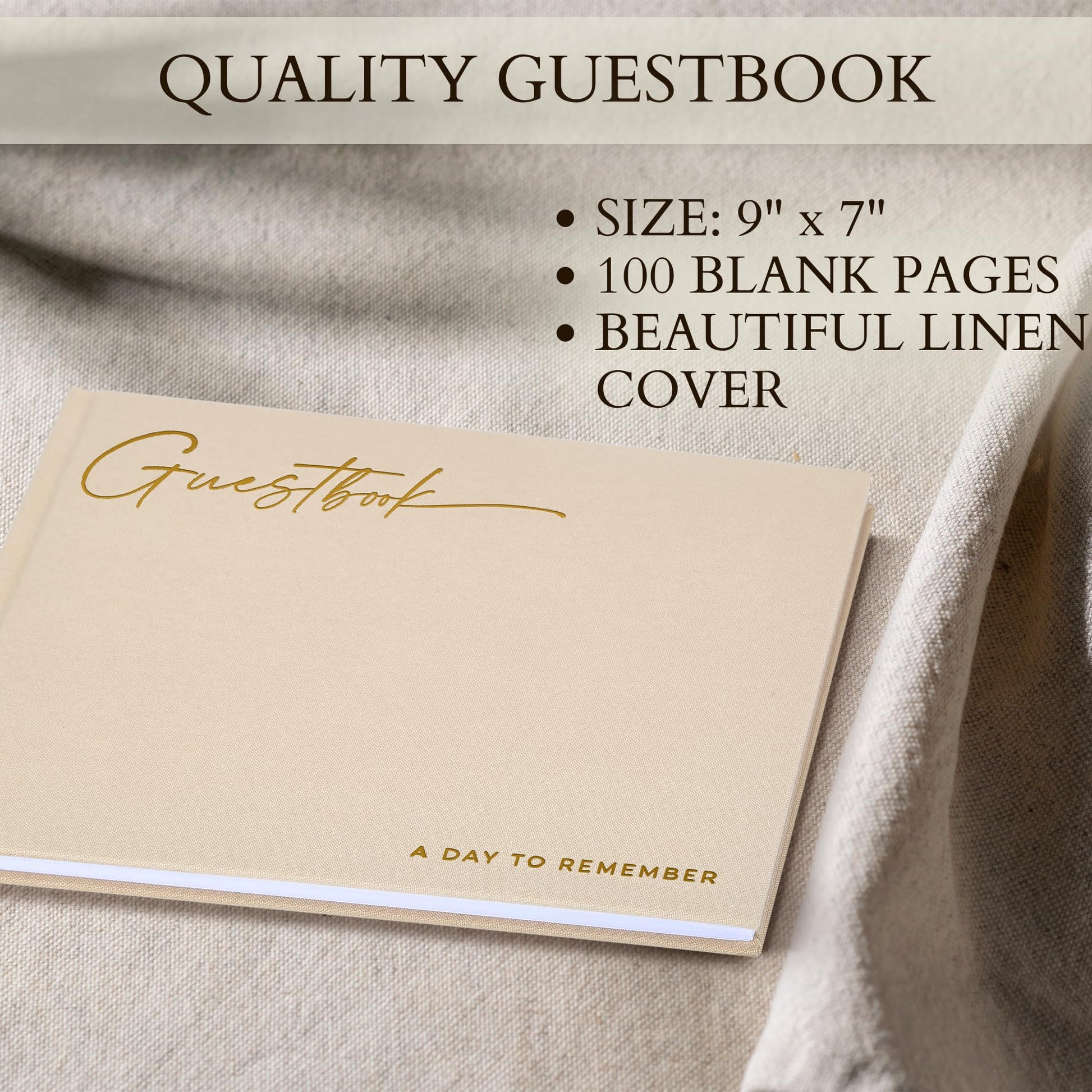 - Beautiful & Elegant Design: Beautifully designed with a modern linen cover in stylish beige, embellished with gold foil lettering and featuring a smart bookmark ribbon - the premium guestbook compliments any wedding decor in a classy, minimalist style