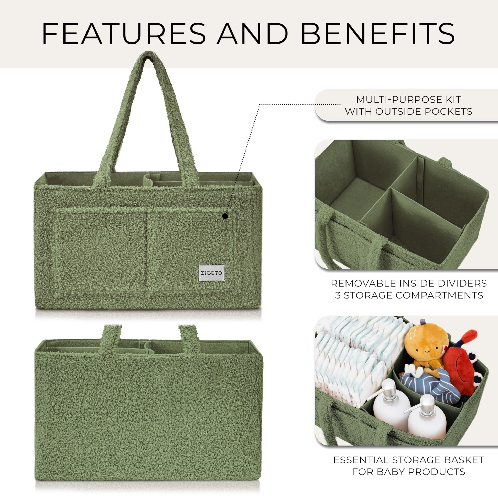Neat & Sweet - Organize with Ease: Keep all baby stuff organized and close by with ZICOTOs’ baby caddy! Featuring 3 spacious compartments, it's great for diapers, wipes, lotions and more. Everything you may need is neatly sorted and within arm's reach!