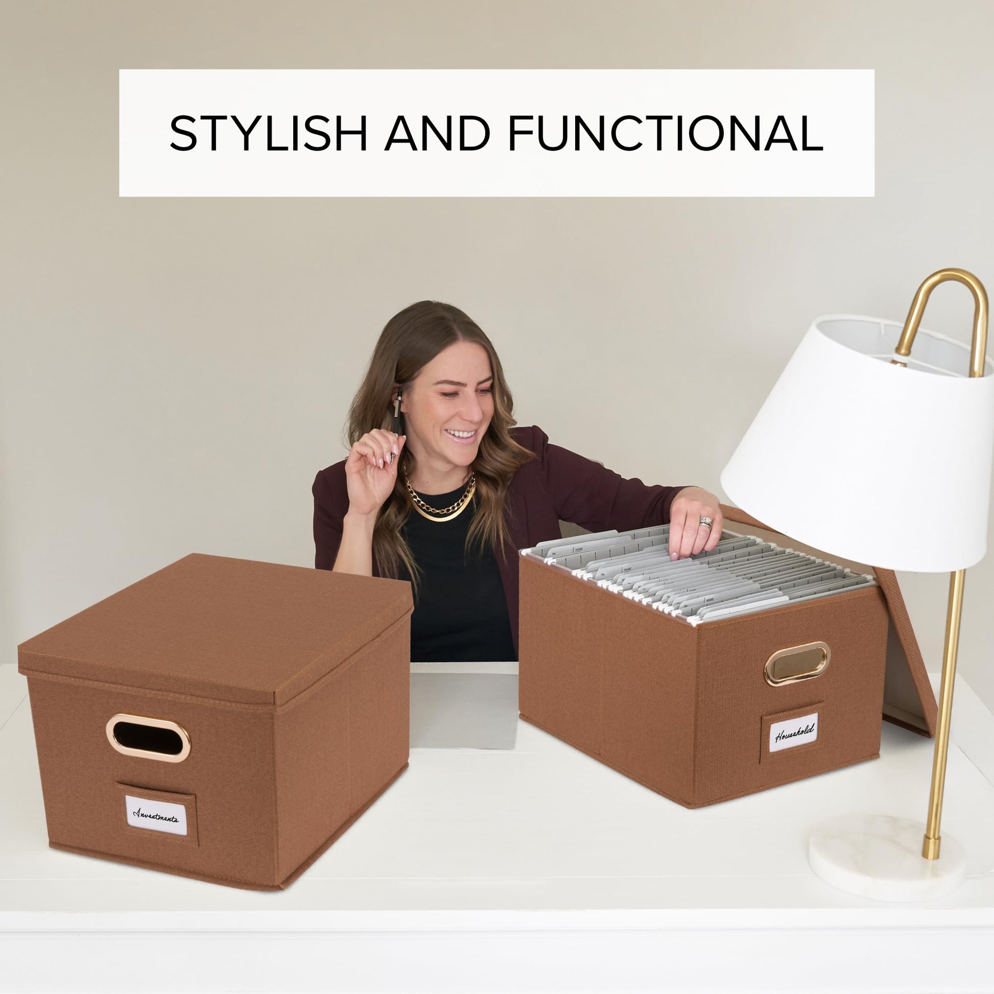 Modern & Decorative: The ZICOTO file folder box in camel linen provides a stylish way to organize all your papers and supplies; Functional features & a beautiful design create the ultimate filing organizer