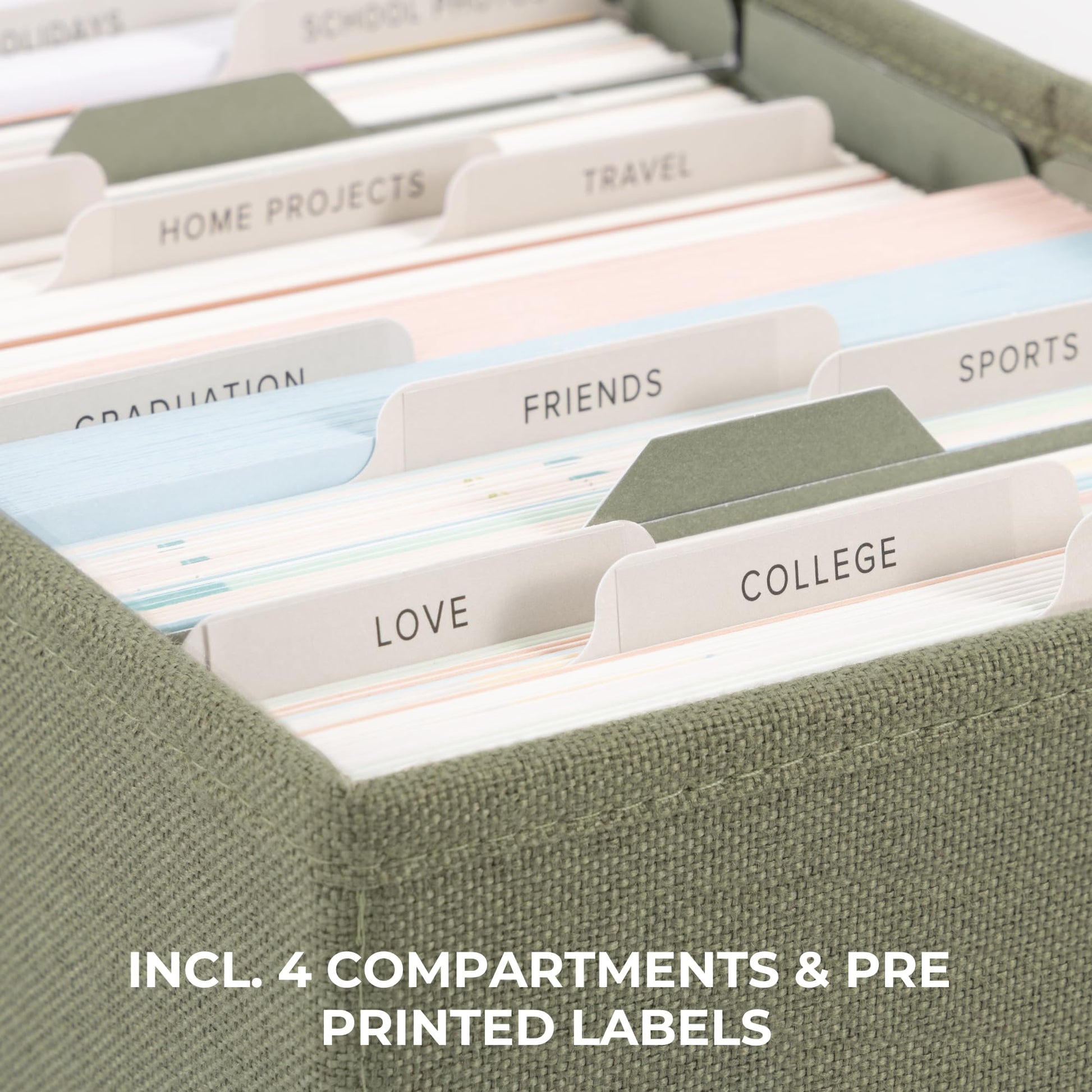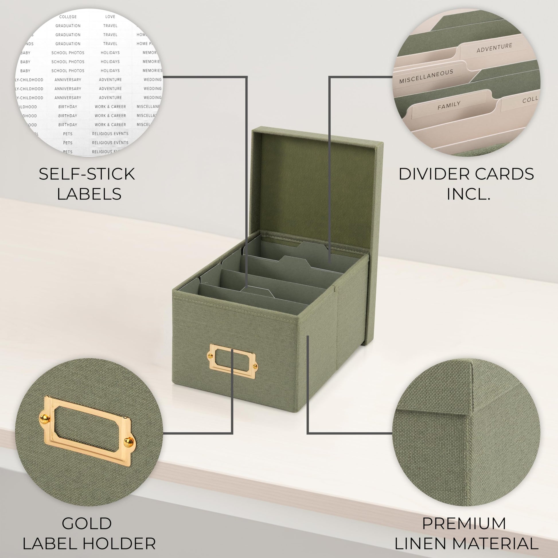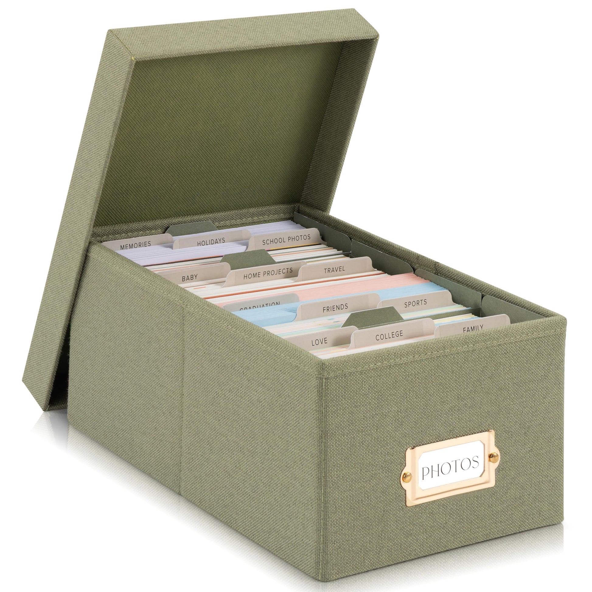 ZICOTO Decorative Photo Storage Box - Sturdy Linen Photo Organizer with Dividers is Perfect to Store Up to 850 Pictures and 4x6 Photos - Portable Scrapbook Storage Containers with Lid