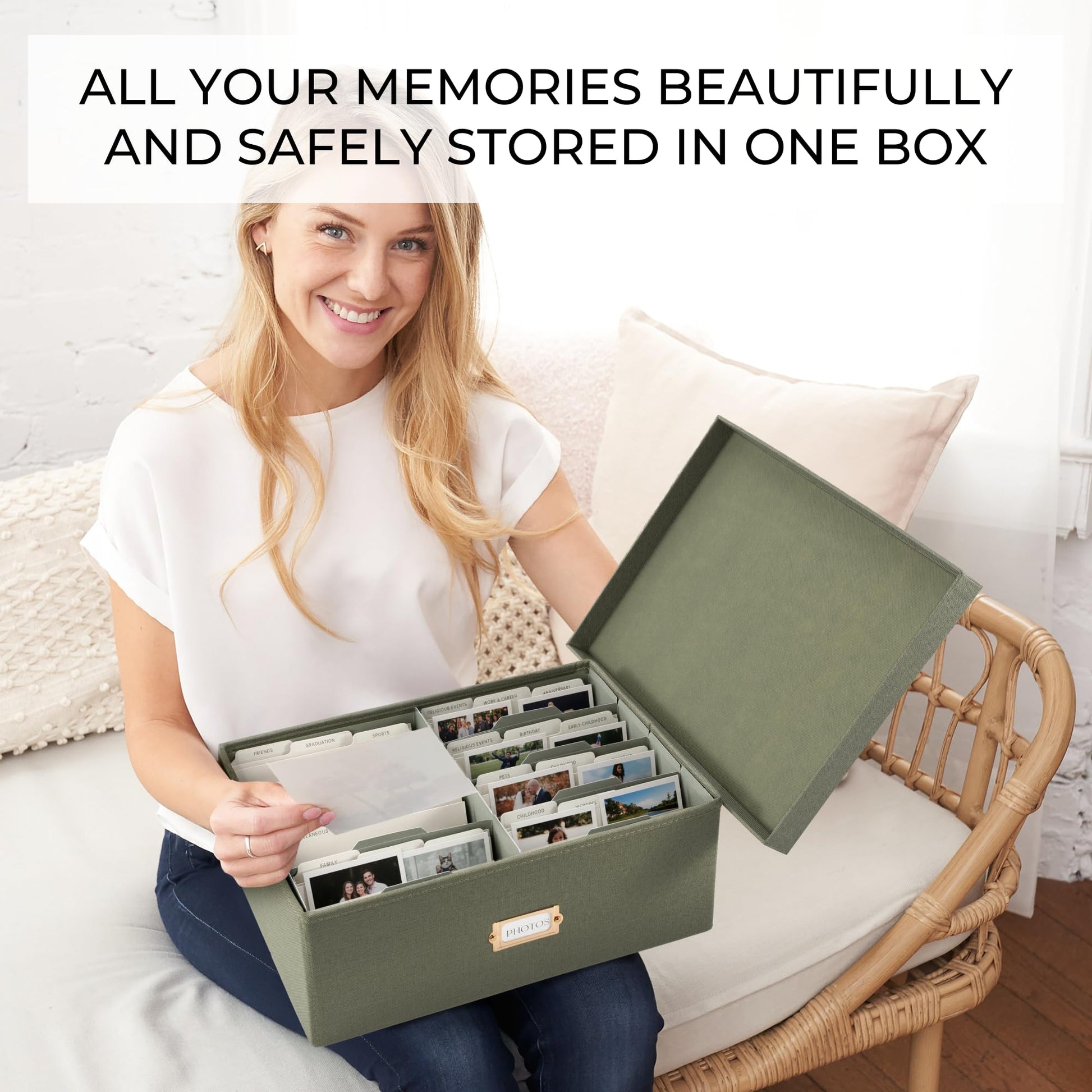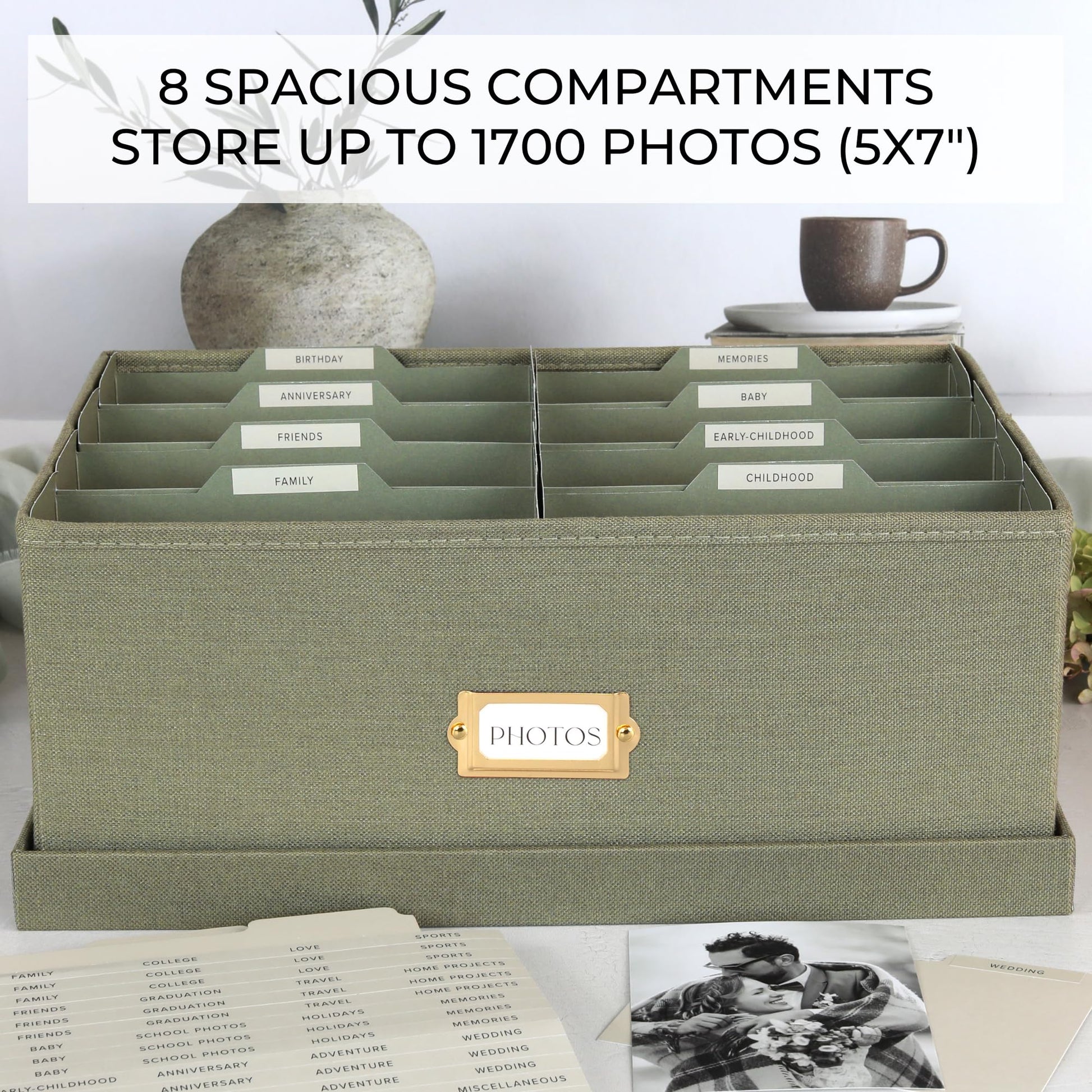 ZICOTO Decorative Photo Storage Box - Sturdy Linen Photo Organizer with Dividers is Perfect to Store Up to 1700 Pictures and 5x7 Photos - Portable Scrapbook Storage Containers with Lid