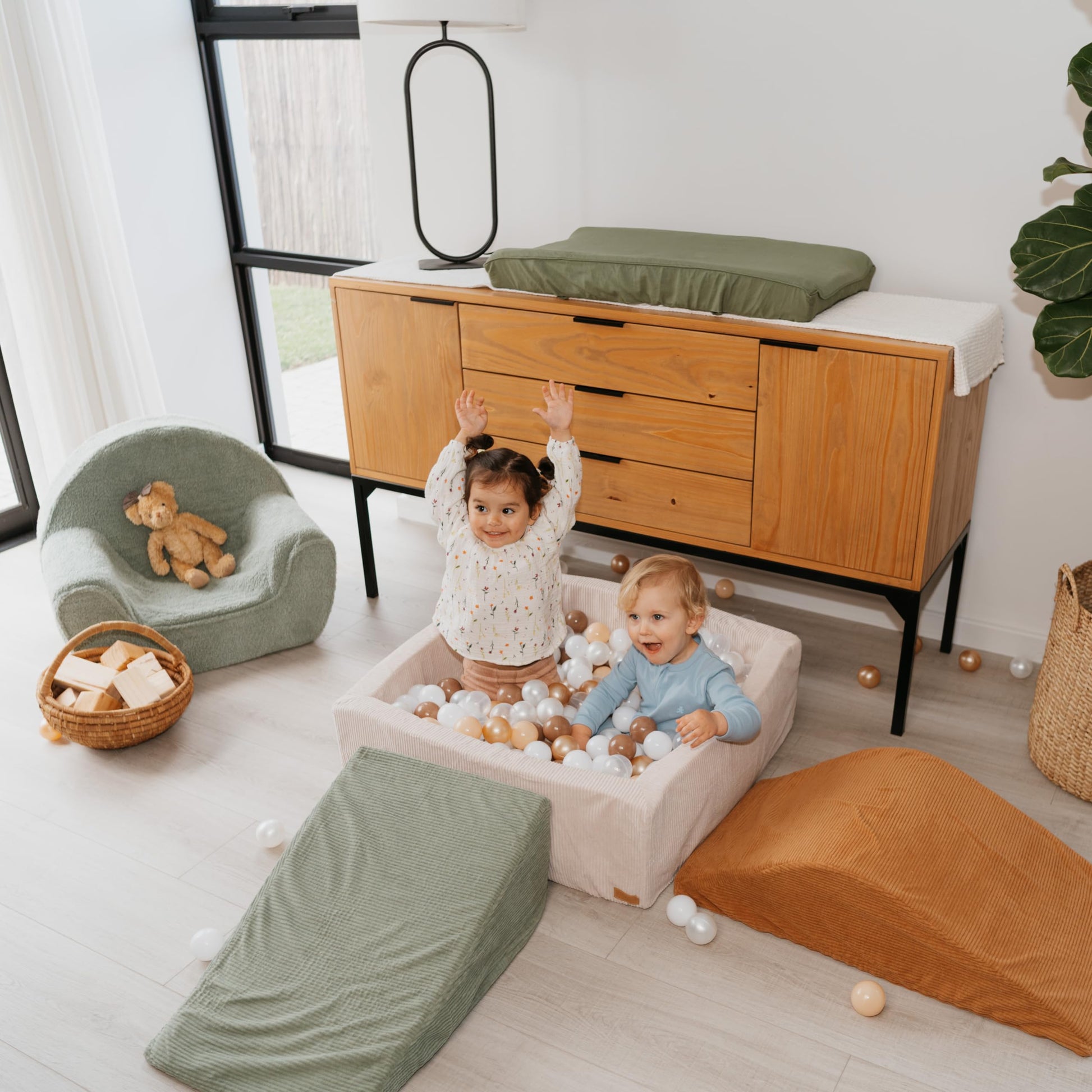 Versatile Captivating Set-Up: The sage, brown & beige toddler ball pit & climbing toys are easy to assemble and rearrange (no hook & loop fastener), allowing you & your little one to switch up the play area for peak enjoyment. Simple set-up, boundless fun!