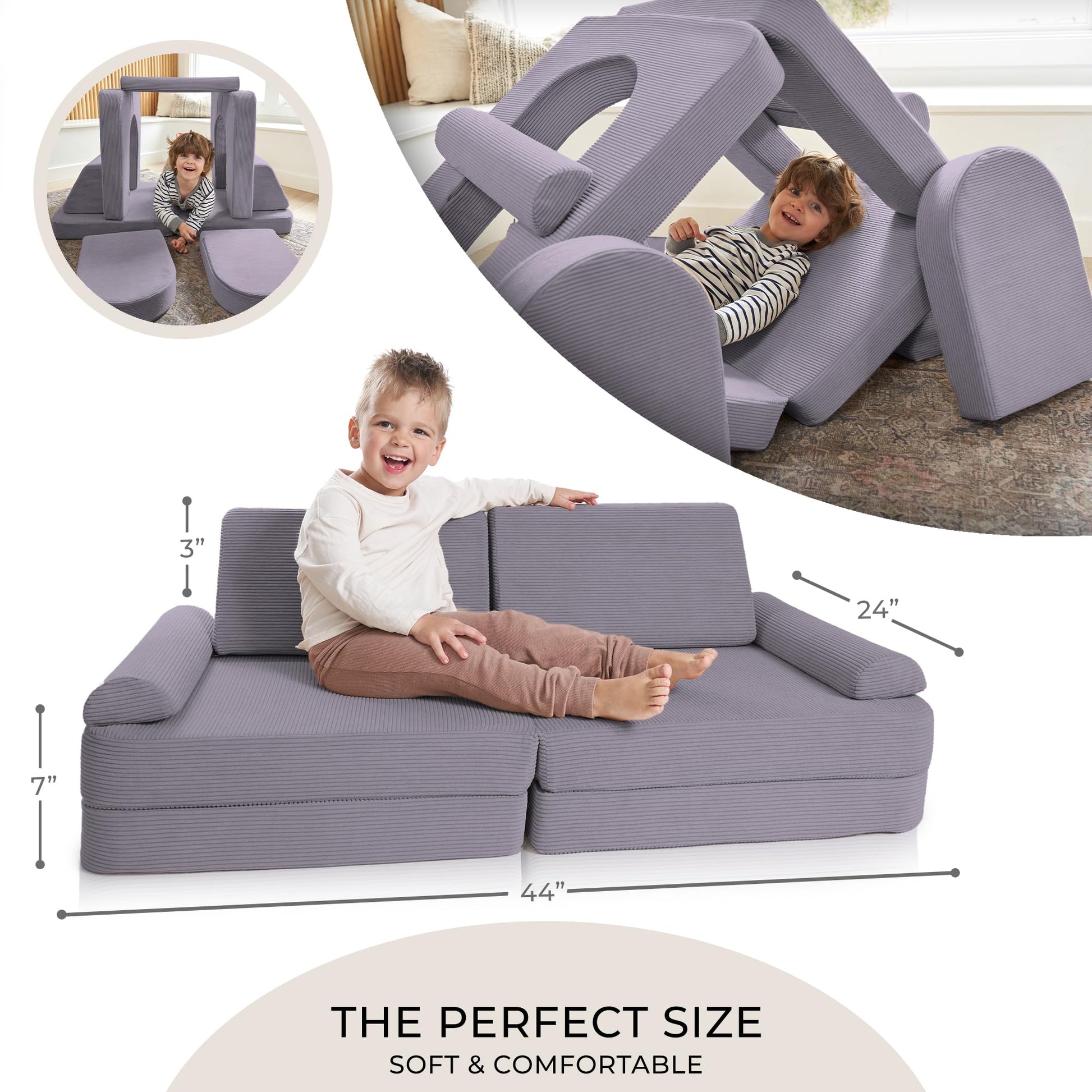 ZICOTO Modular Kids Play Couch for Fun Play Time or Comfy Lounging - The Perfect Toddler Sofa to Boost Creativity and Easily Build Magical Forts and More in Your Playroom/Nursery